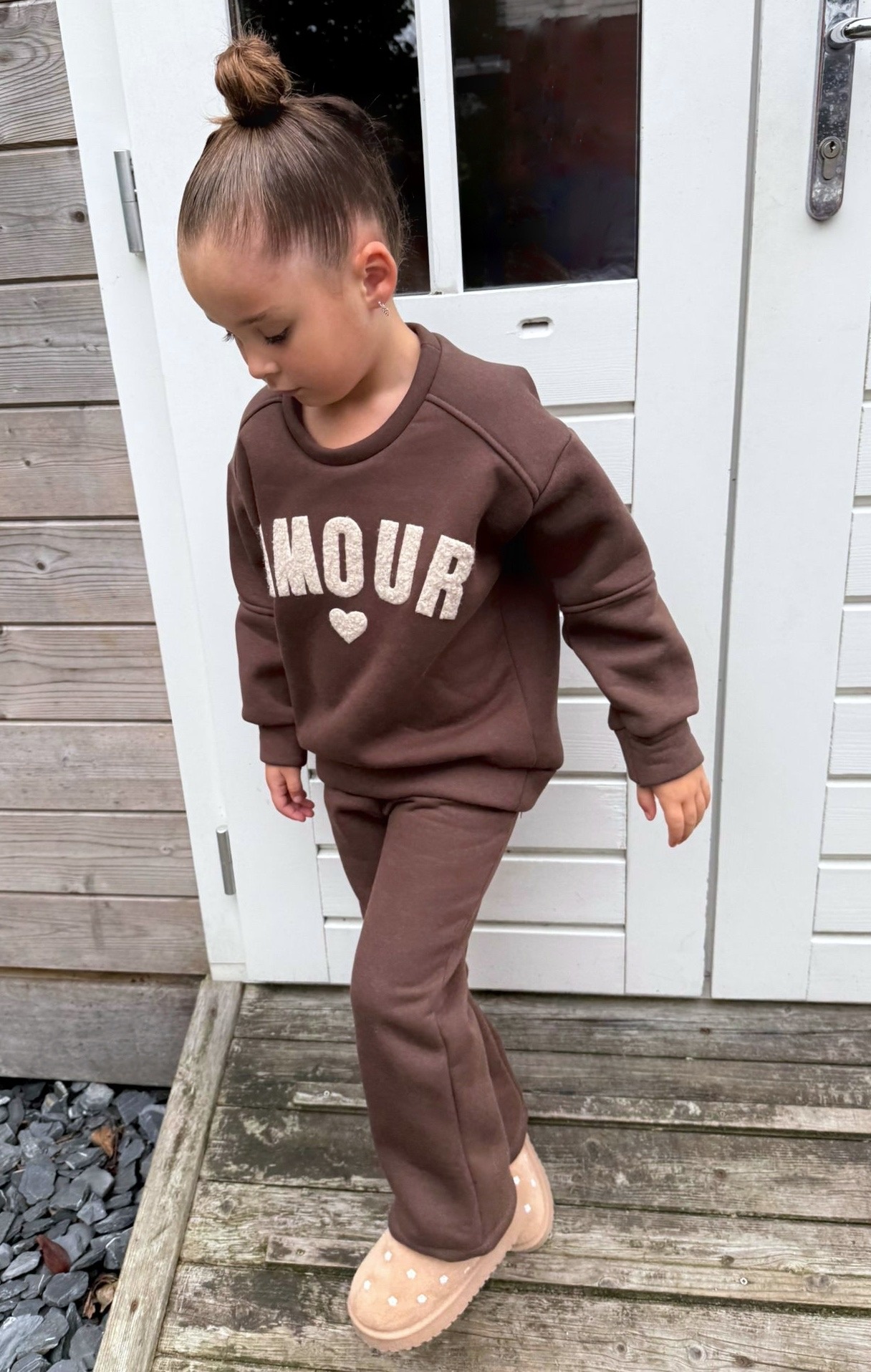 Camel meisjes set bestaande uit een trui en een flared jogger. Comfortabel én trendy! Perfect voor meiden die houden van fashion. Verkrijgbaar van maat 98/104 t/m 158/164.