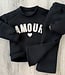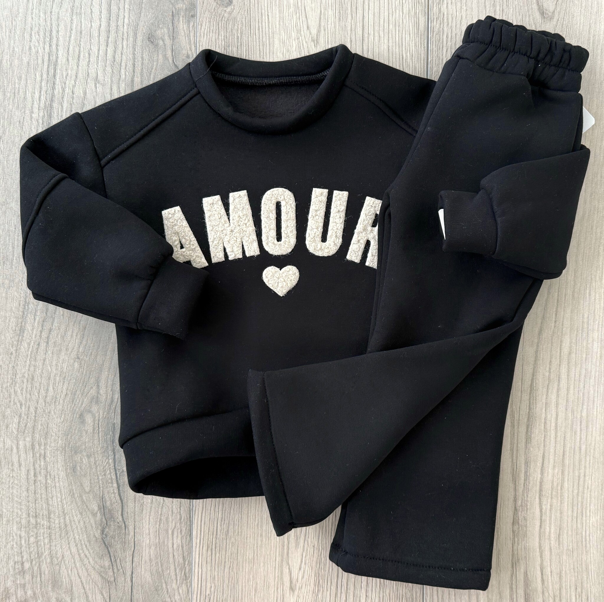 Zwart meisjes set bestaande uit een trui en een flared jogger. Comfortabel én trendy! Perfect voor meiden die houden van fashion. Verkrijgbaar van maat 98/104 t/m 158/164.