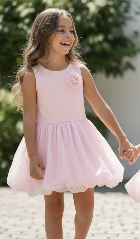Chique roze meisjesjurkje. Perfect voor feestjes of een stijlvolle look. Comfortabel, luchtig en geschikt voor elk seizoen!