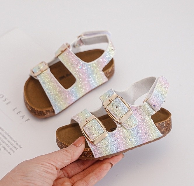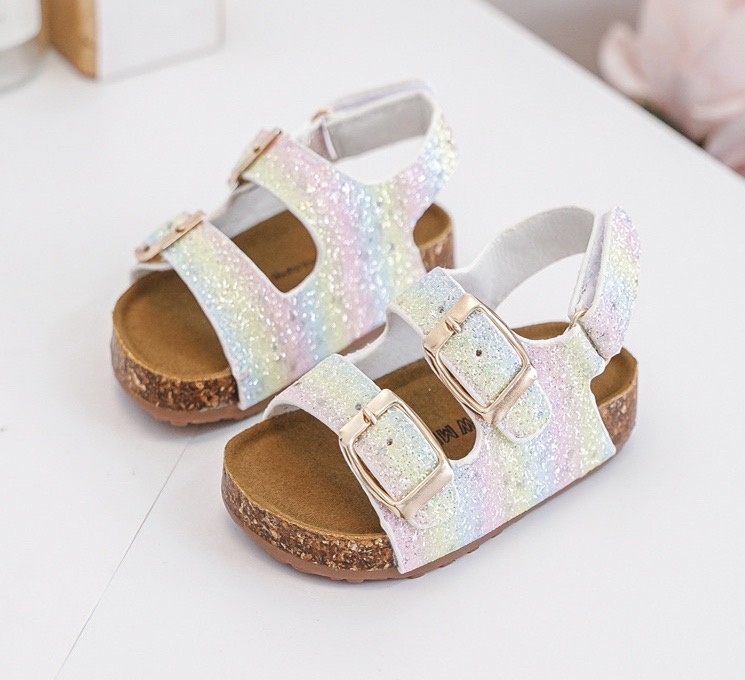 De sandalen zijn opgemeten van grote teen tot hiel: