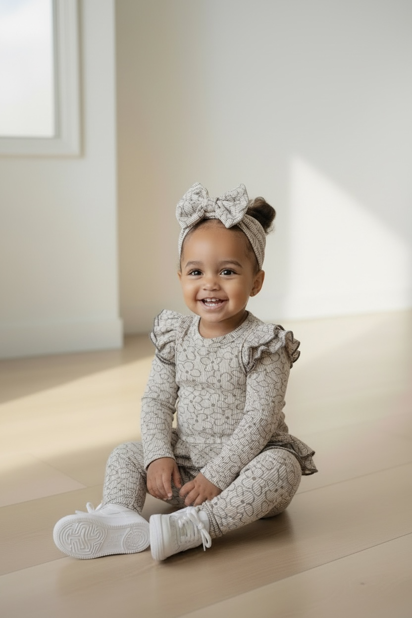 Bloemen legging set met haarband - Grijs (Verzenddatum 26 feb)