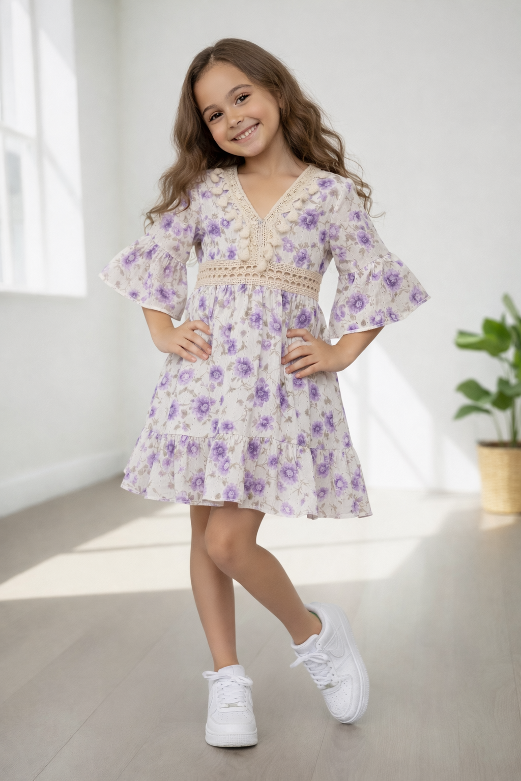 Boho Bloemenjurk – Wit/Paars