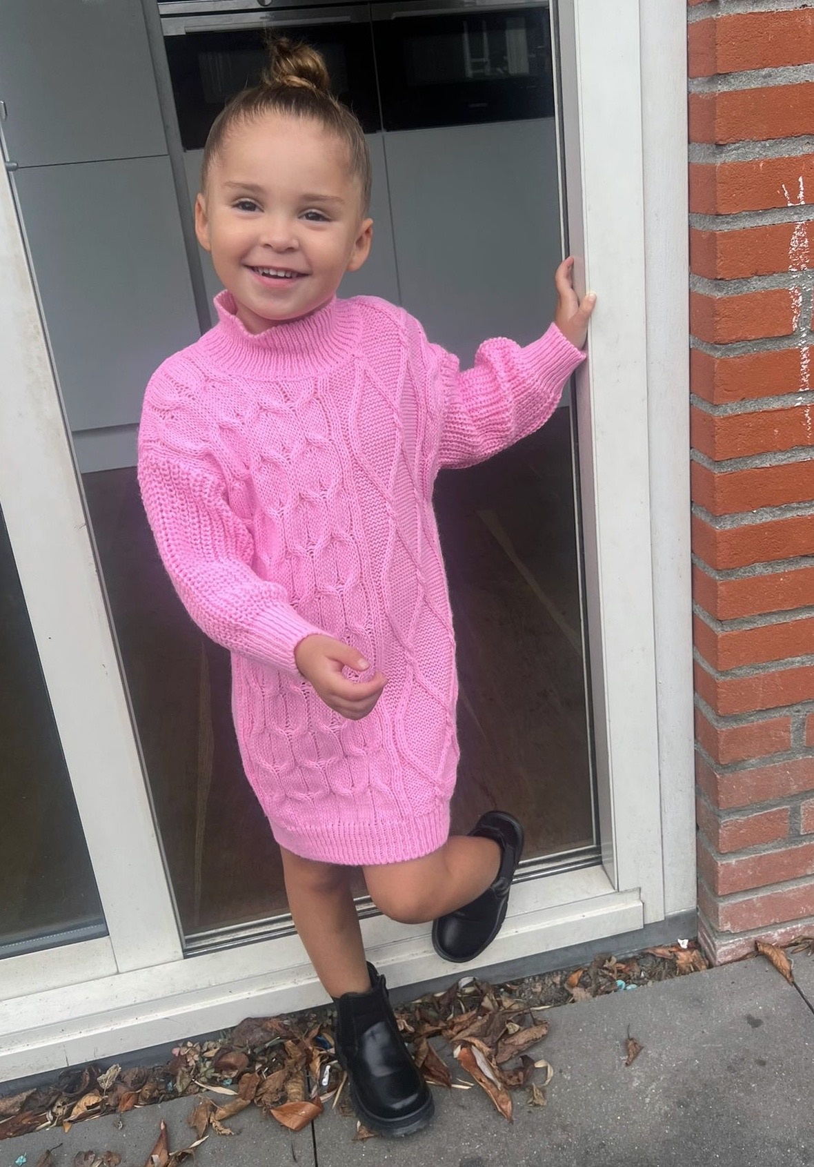 Dit prachtige jurkje is een musthave voor de koudere dagen! Super gaaf te combineren met een panty of maillotje en een paar stoere kinderlaarzen.