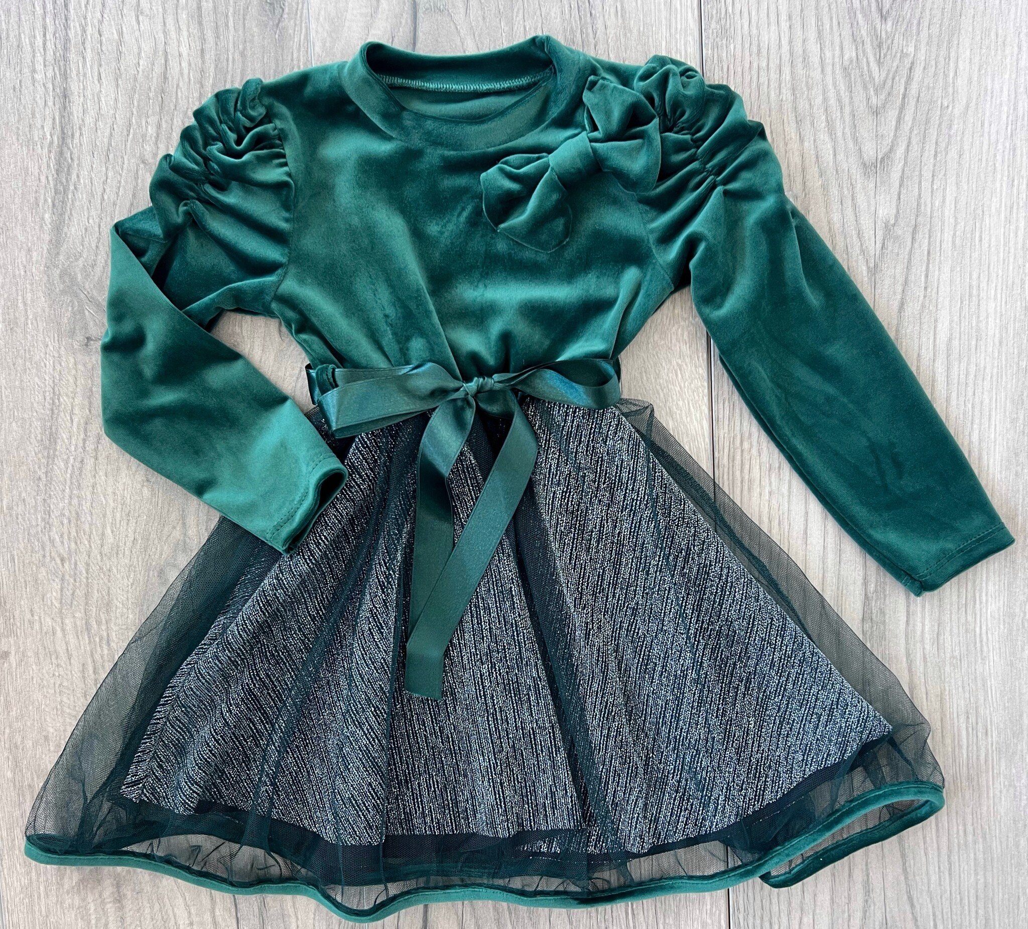 Christmas velvet dress - DK. Groen (Verzenddatum 20 nov)