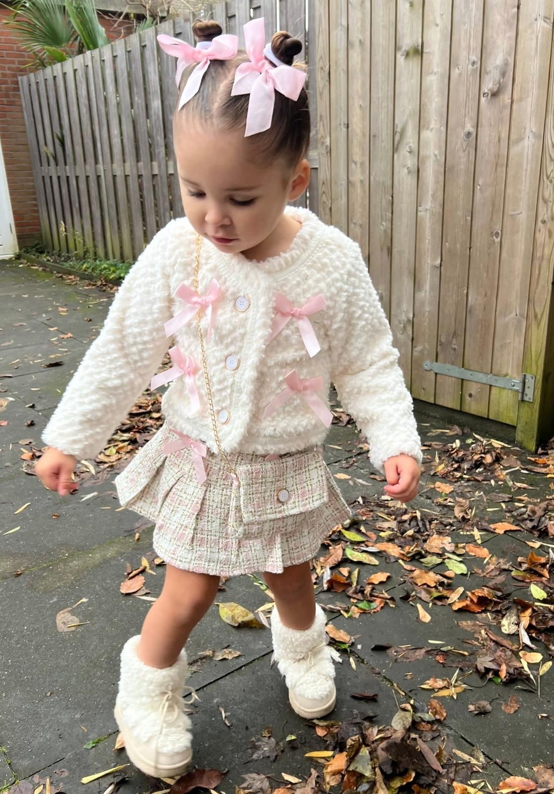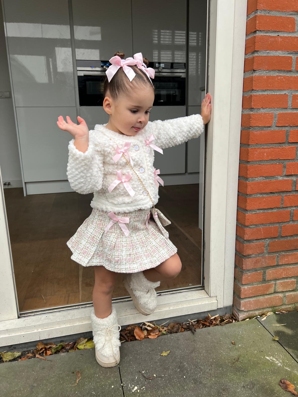 Dit lieve 2-delige setje is zo heerlijk zacht! En de bijpassende haar elastiekjes maken de outfit helemaal af!