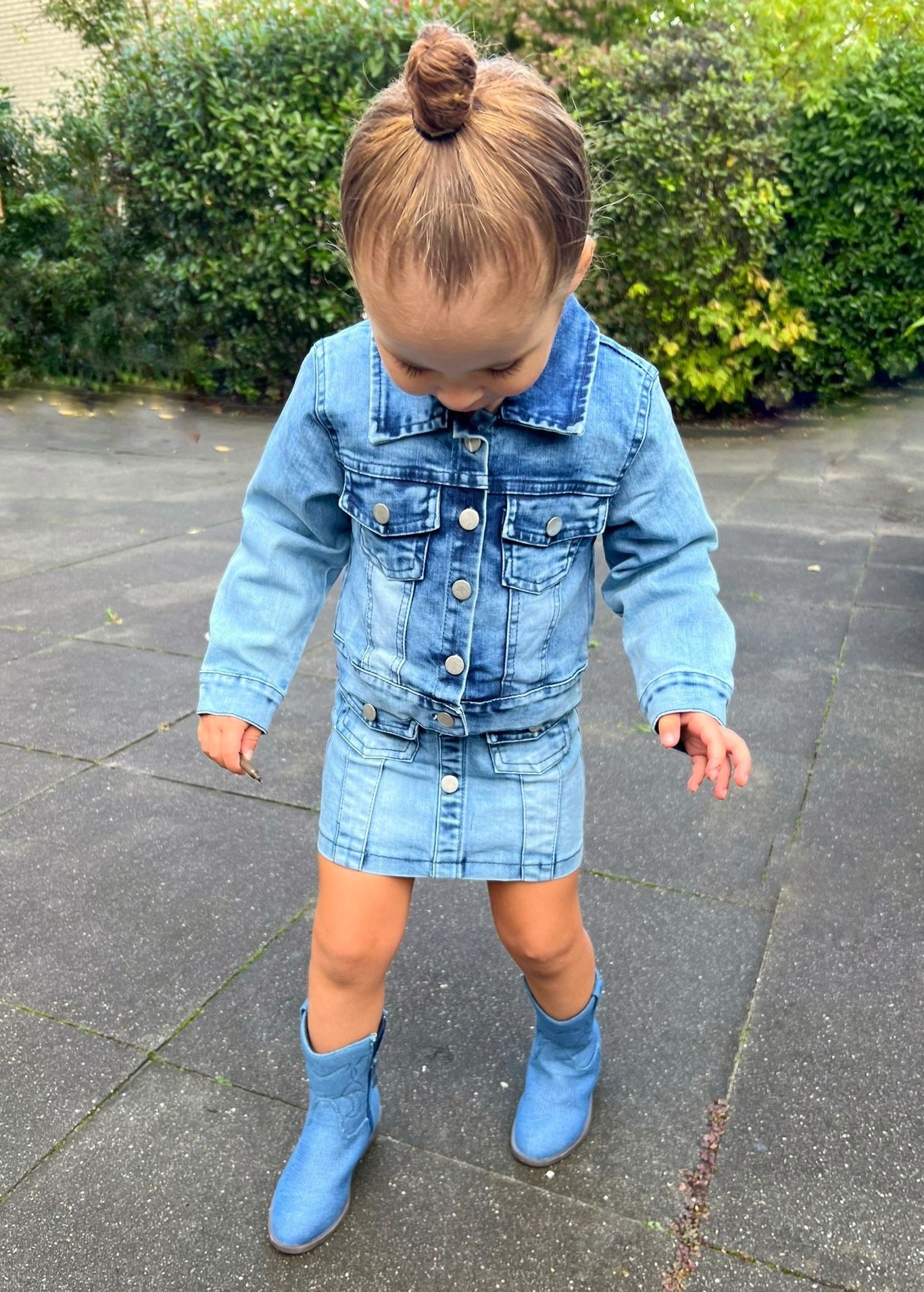 Super tof denim setje voor de meisjes!