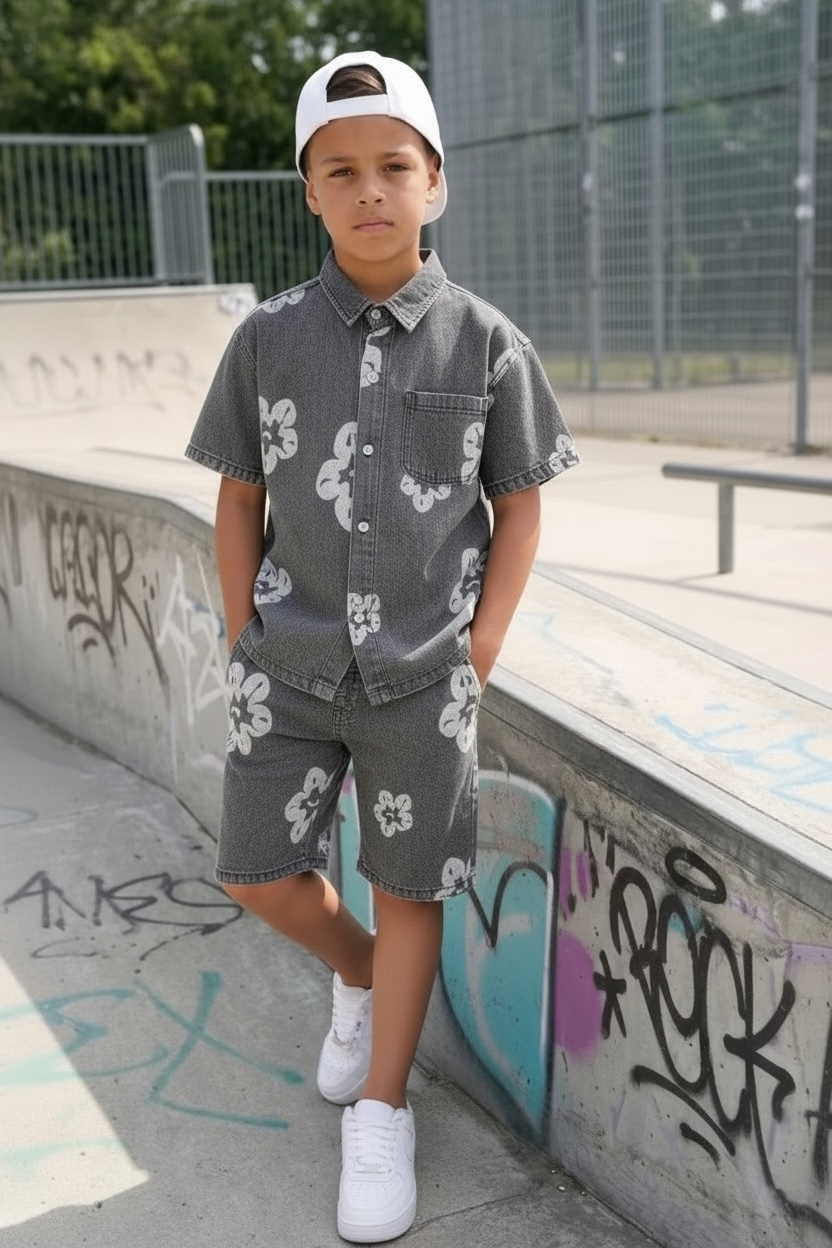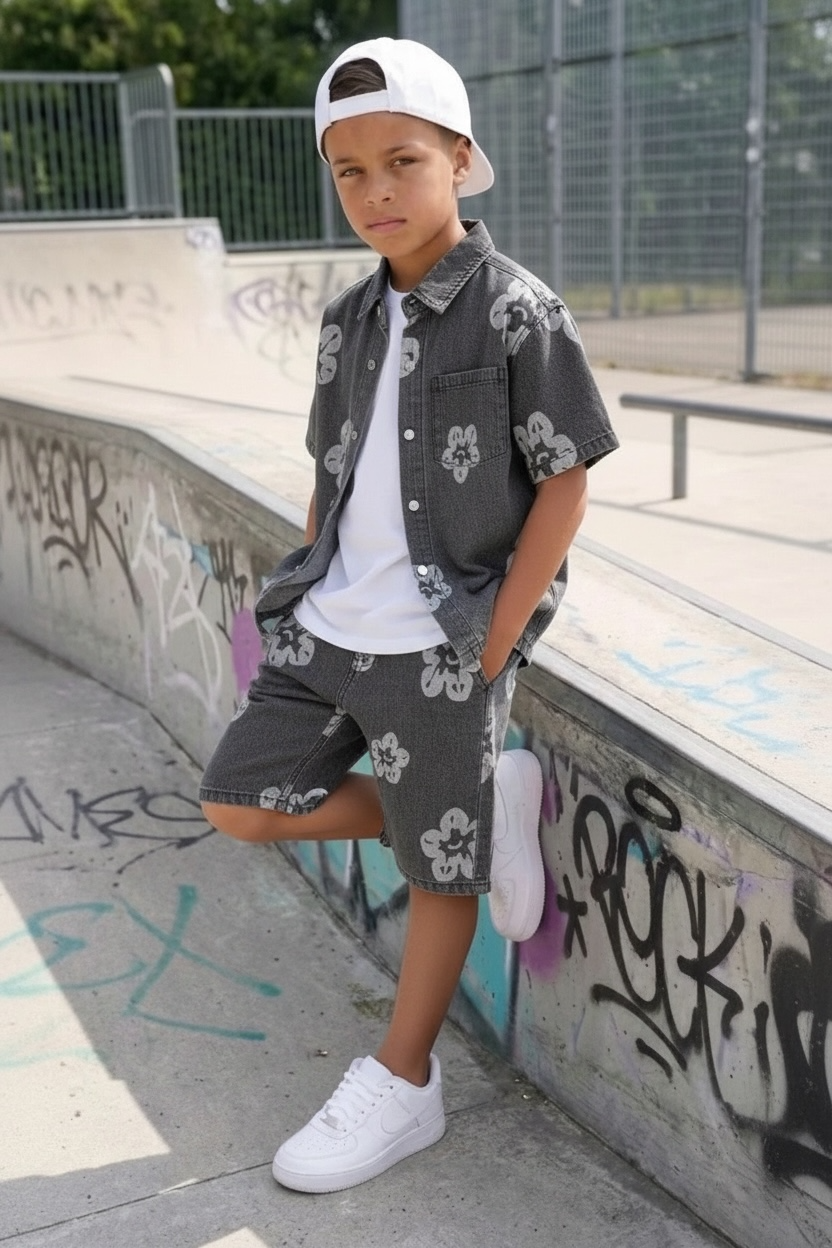 Met dit gave complete flower setje voor jongens is jouw stoere jongen helemaal ready to go! Het 2-delige setje voor jongens bestaat uit een korte broek met een bijpassend T-Shirt.