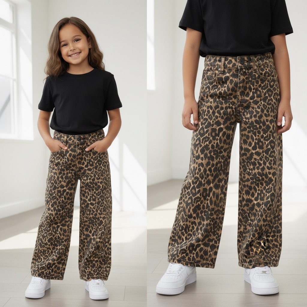 Trendy denim jeans in leopardprint van No Way Monday. Comfortabel en stijlvol voor hippe meiden. Verkrijgbaar in maat 92 t/m 140. Perfect voor een stoere, fashionable look!
