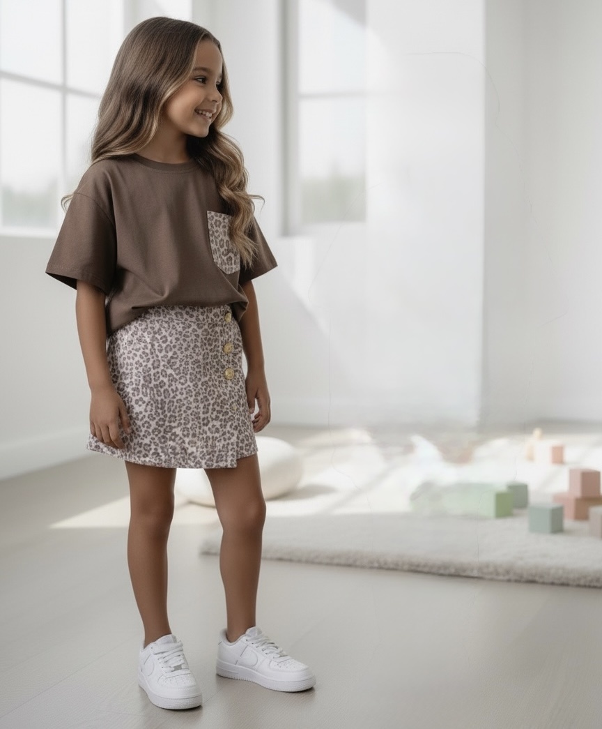 Denim Leopard skort Set - Marron (1 week levertijd)