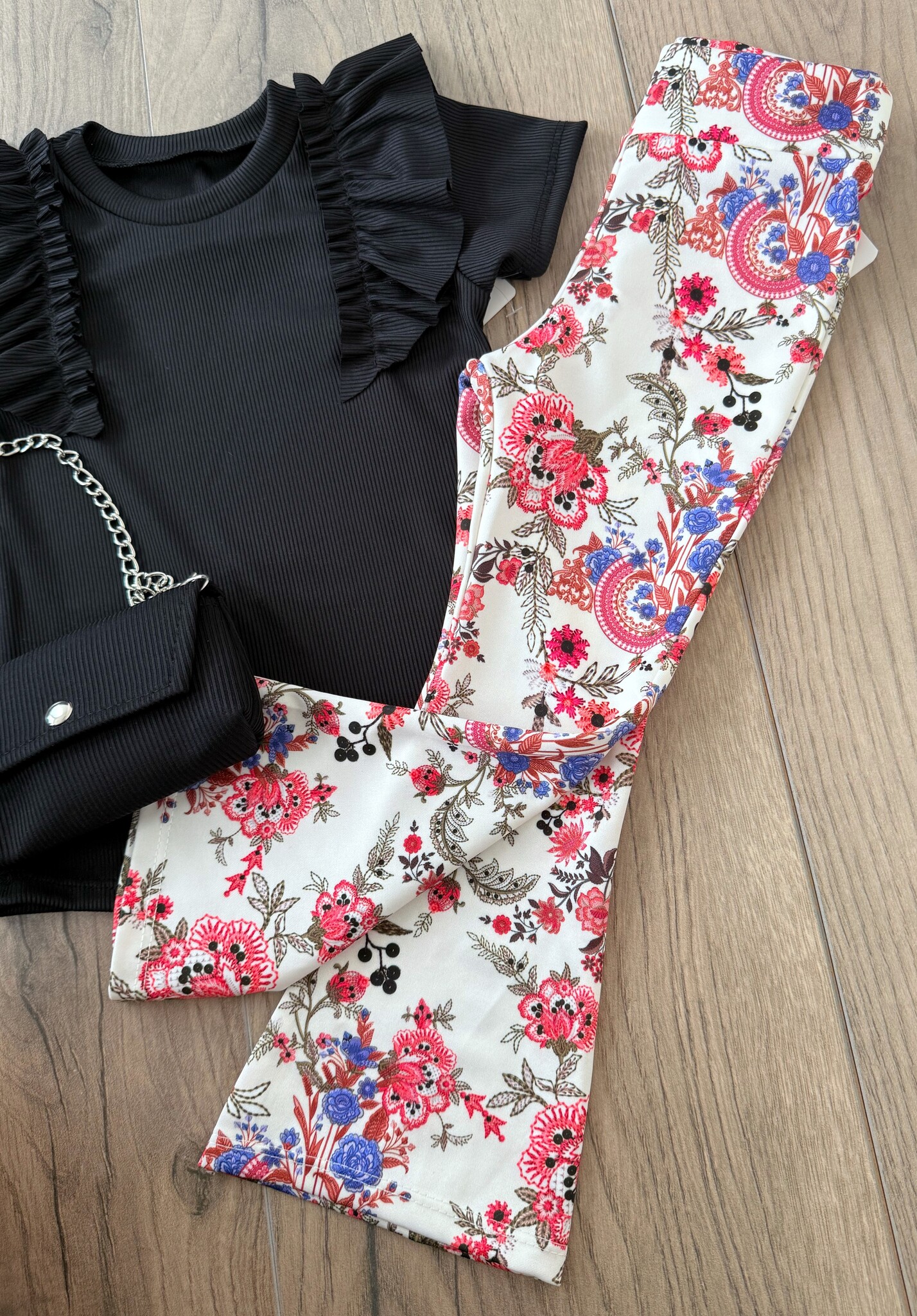 Een prachtige stretchy flared broek met flowers voor meisjes!