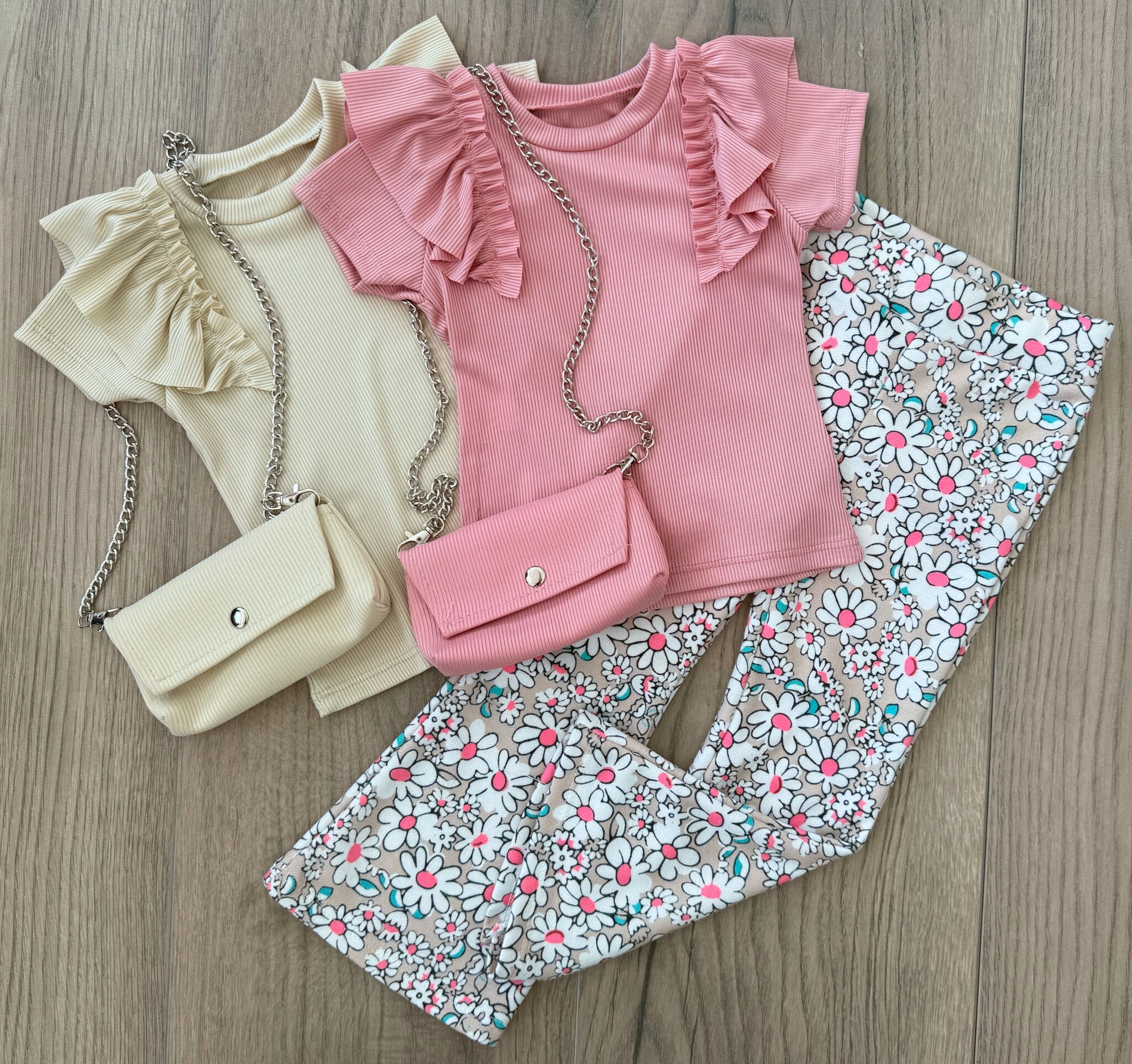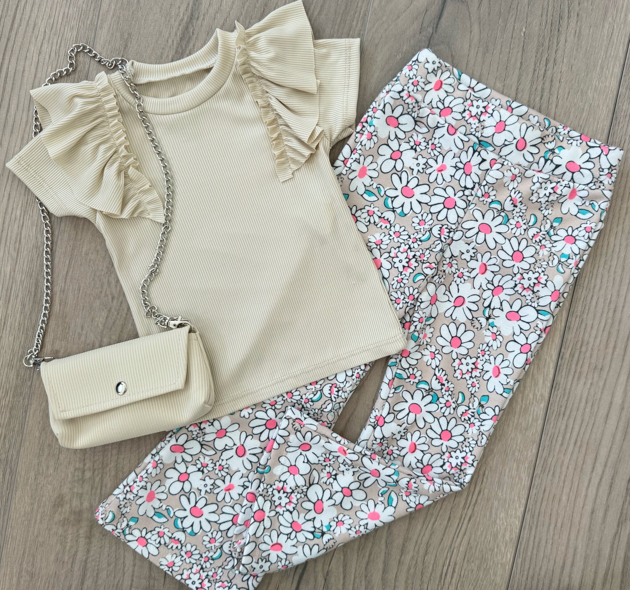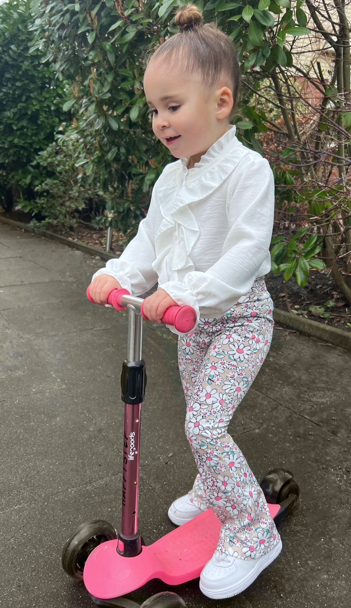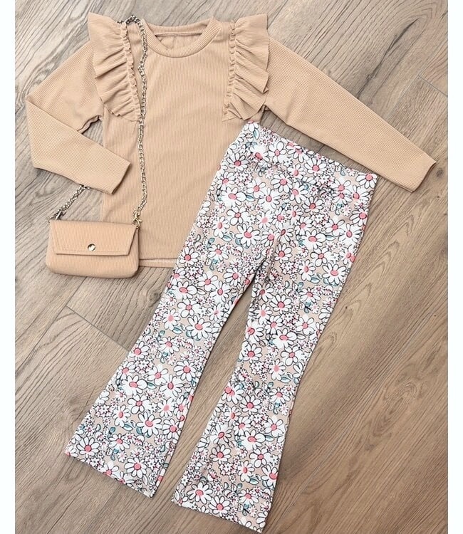 Laat je meisje stralen in deze vrolijke flared broek met bloemenprint!