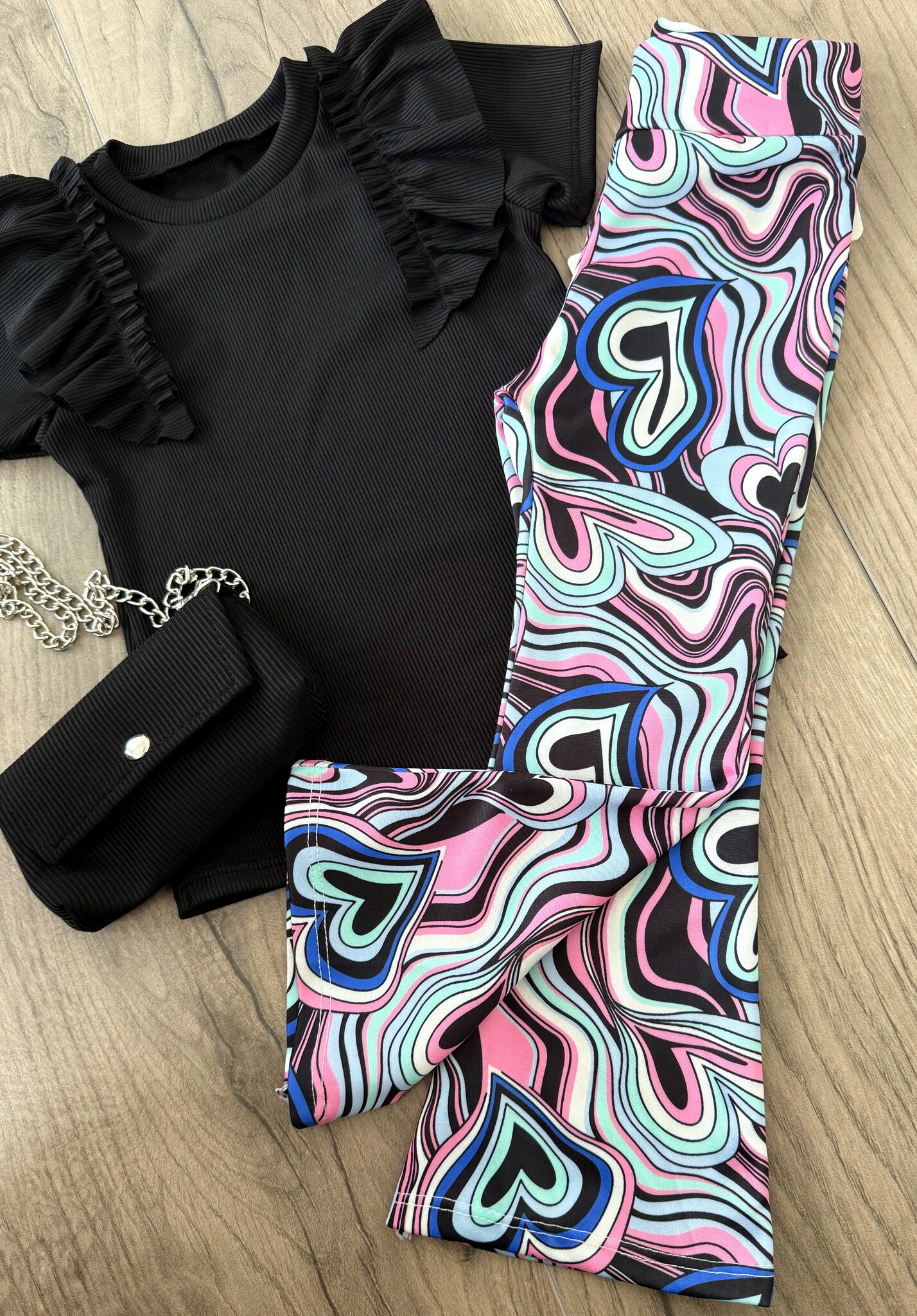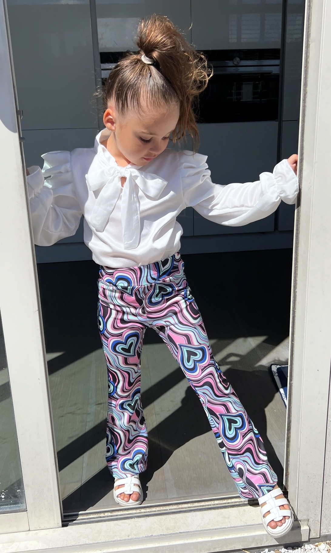 Een prachtige stretchy flared broek met hartjes voor meisjes!