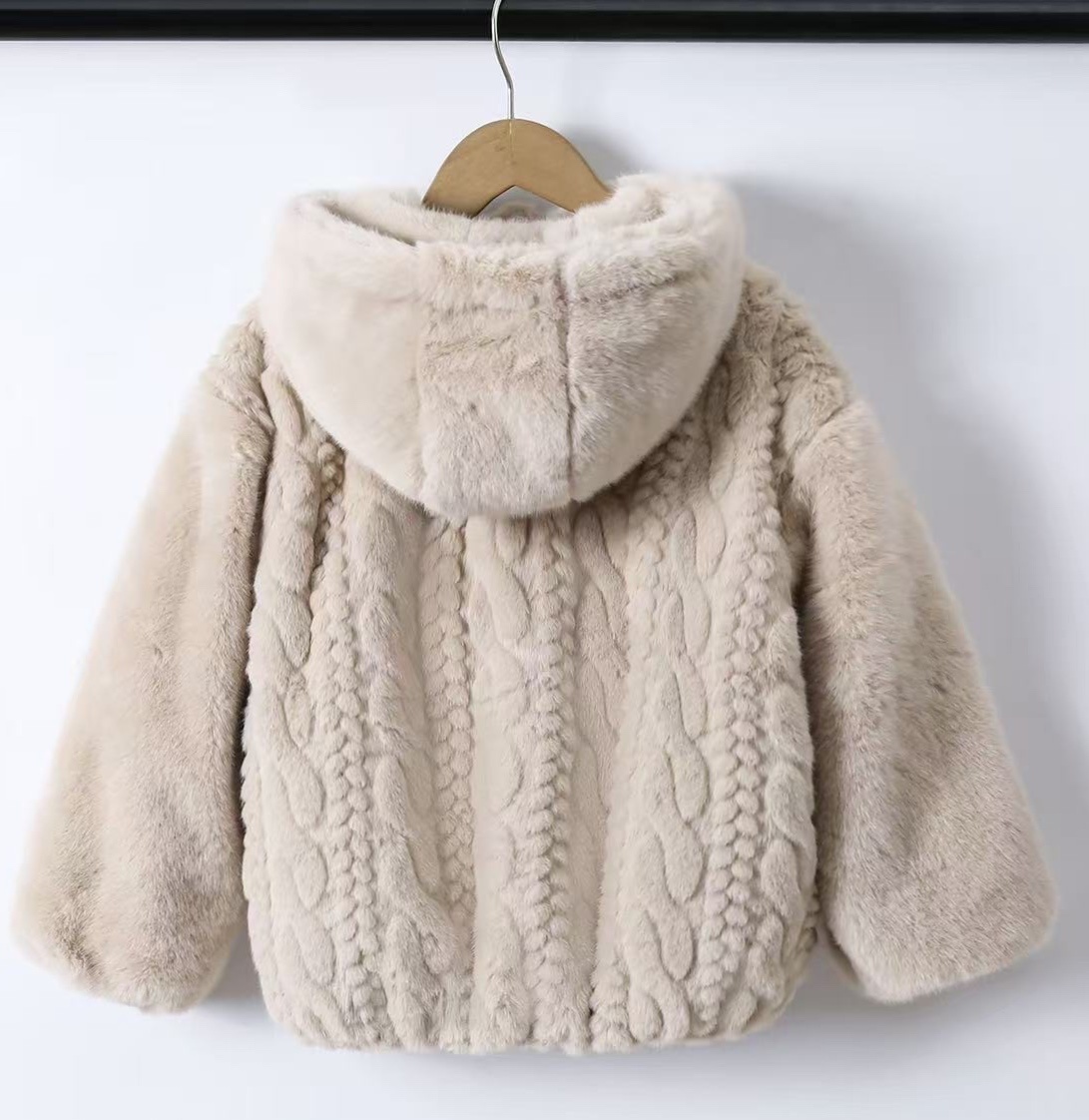 Een prachtig fluffy jasje met capuchon voor de meisjes!