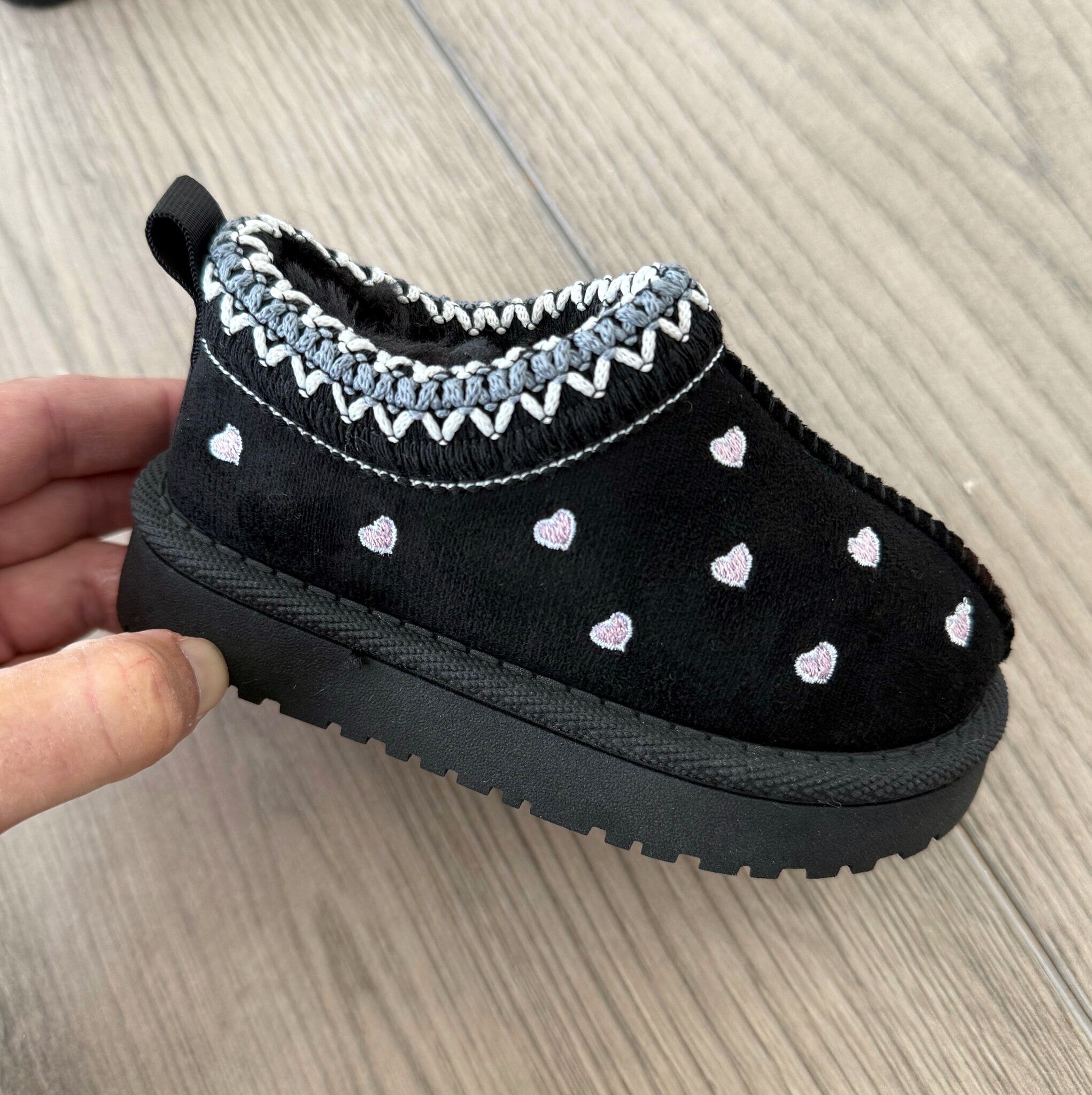 Deze warme gevoerde instappers zijn net zo knus als ze eruitzien! De zwarte zachte buitenkant in combinatie met de zachte fleecevoering aan de binnenkant maakt deze sloflaarsjes onweerstaanbaar voor koude voetjes. De schattige gebreide rand geeft ze een cosy, winterse look waar je instant blij van wordt.