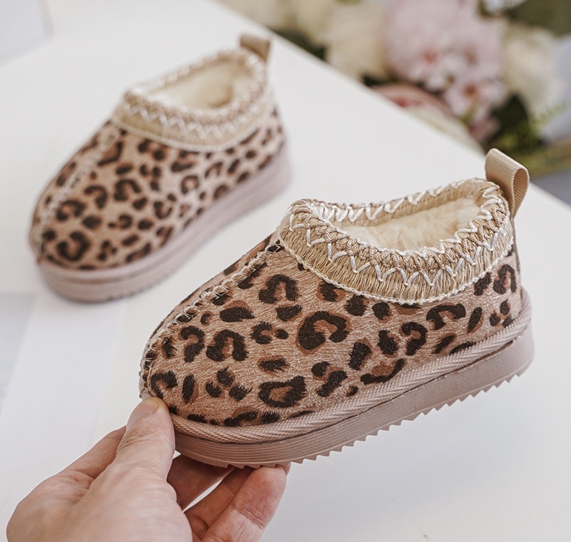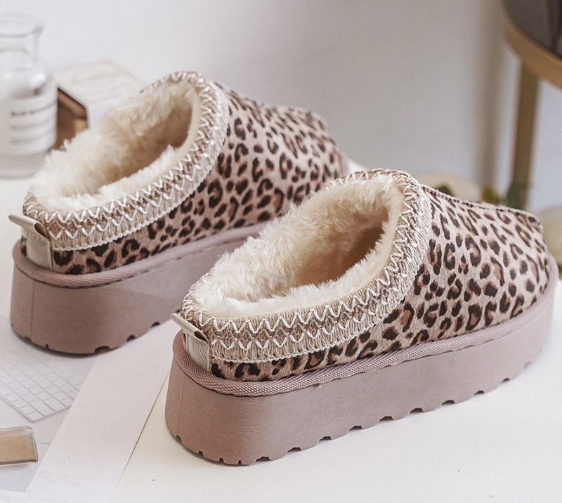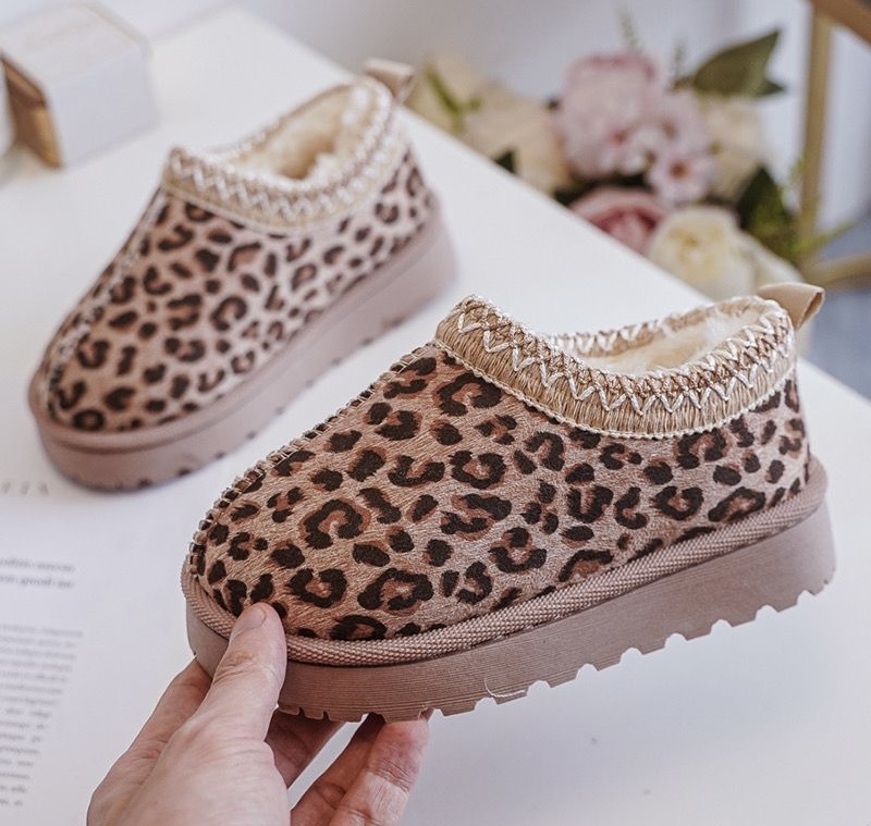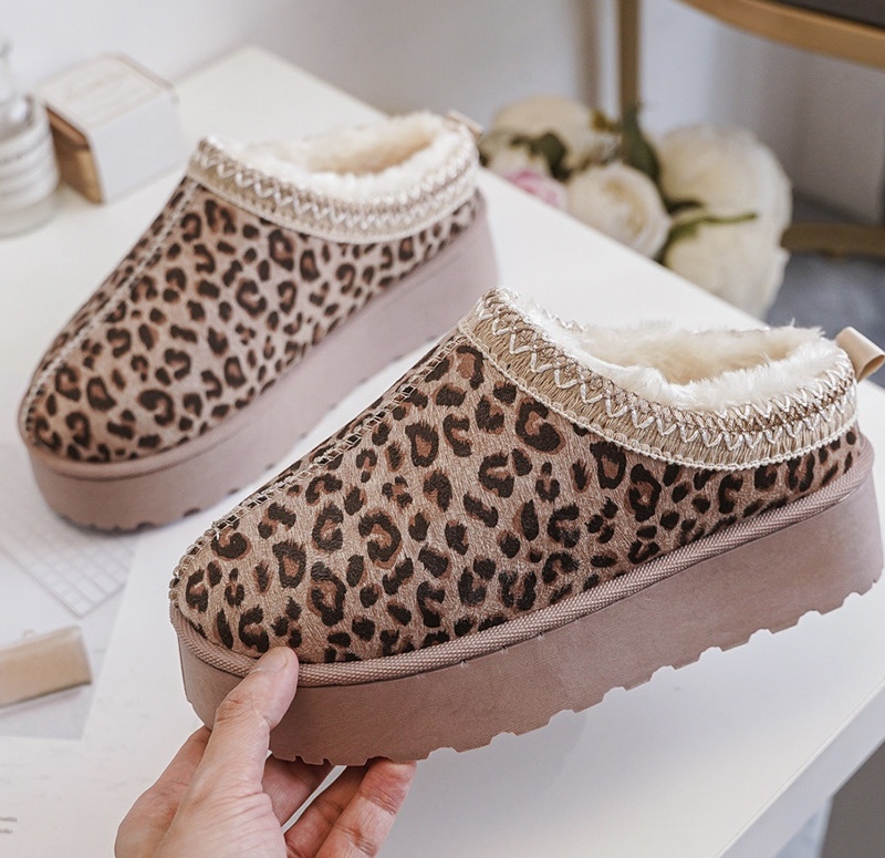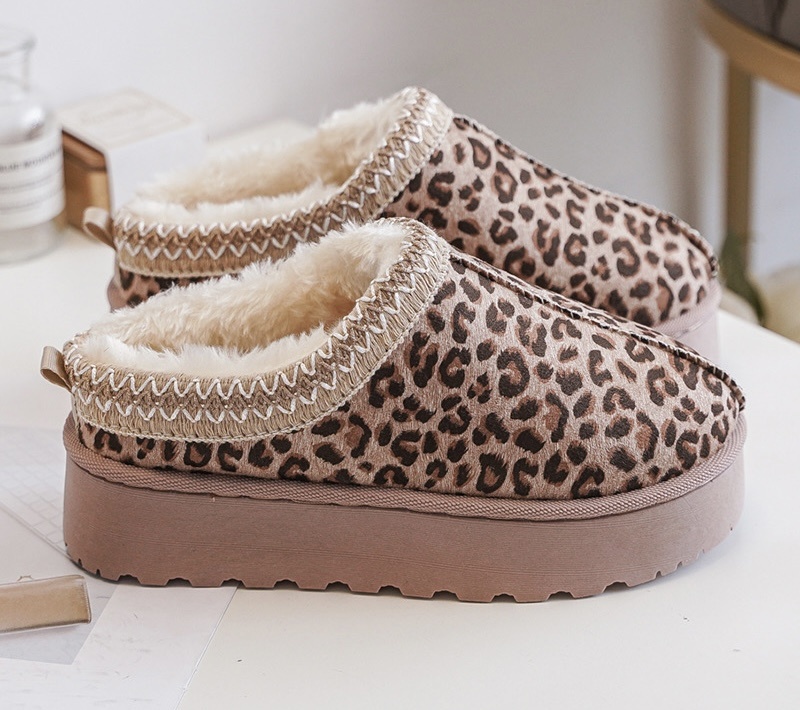 Warme sloflaarsjes met panterprint, zachte fleecevoering en gebreide afwerking. Voor stoere meisjes én mama’s. Maat 19 t/m 41.