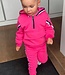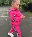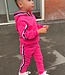 Stoer felroze meisjes joggingpak met hoodie en bijpassende broek. Sportieve streep langs mouwen en pijpen. Op werkdagen vóór 15:00 besteld = morgen in huis.