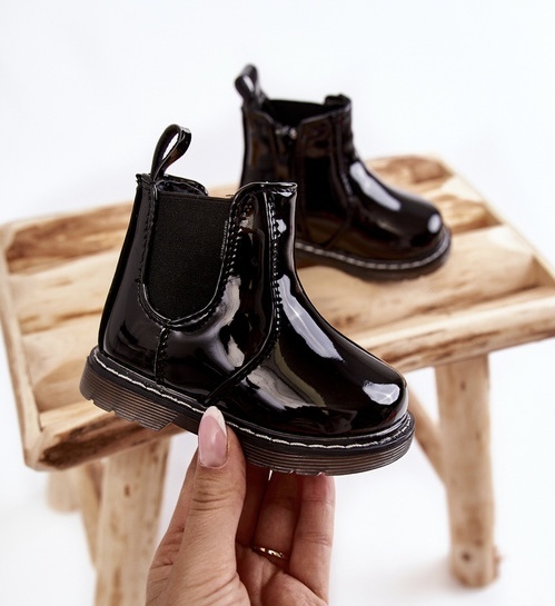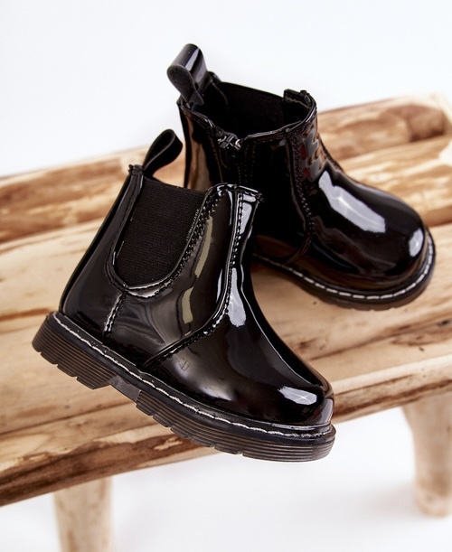 Deze stijlvolle zwarte Chelsea laarsjes met laklook zijn een echte musthave!
