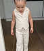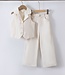 Beige meisjes gilet setje met wijde broekspijp. Gemaakt van neutrale stof voor een comfy fit. Verkrijgbaar van maat 98/104 t/m 158/164.