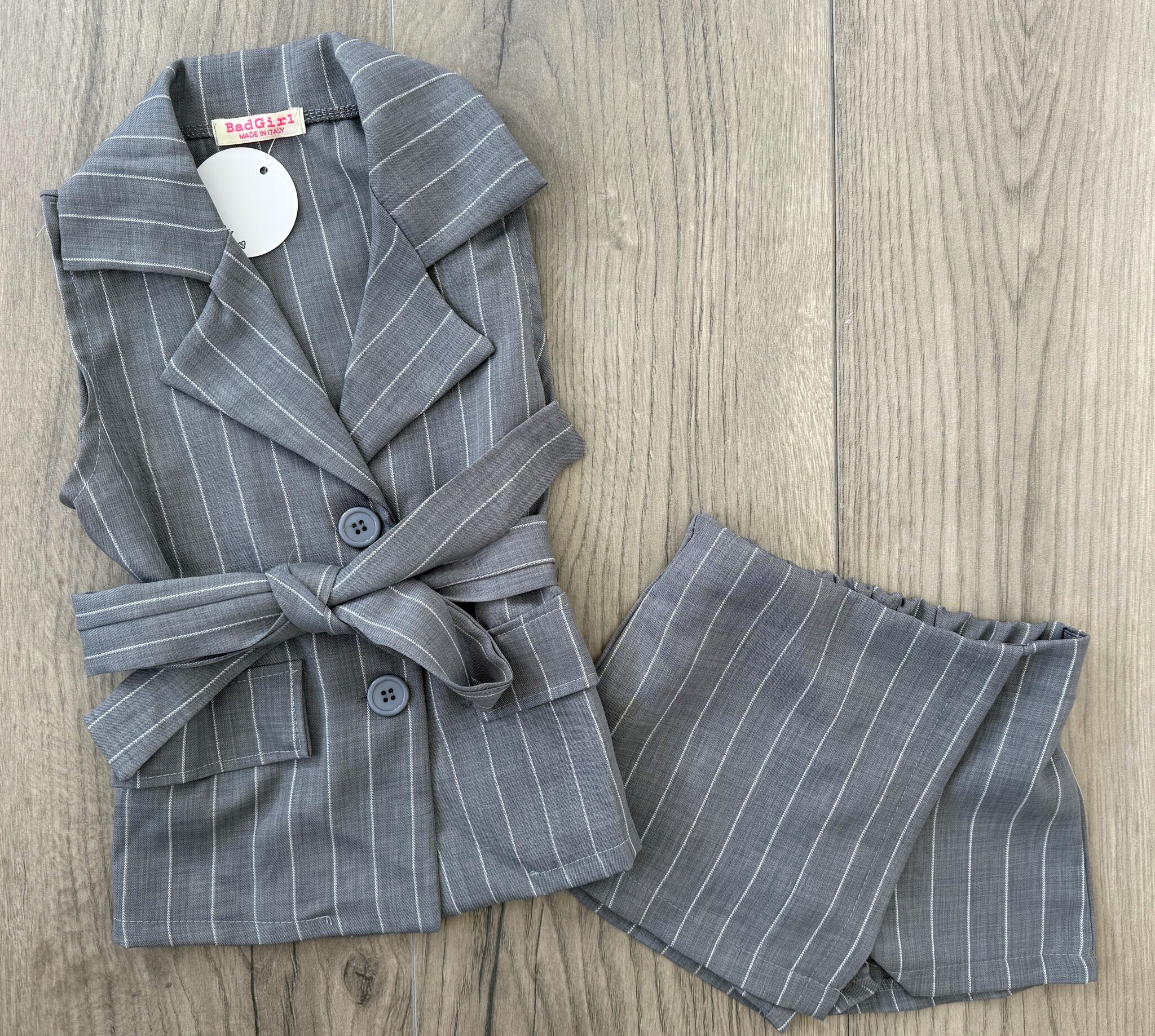 Een prachtige gilet met een bijpassend broekrokje in de maten 98/104 t/m 158/164