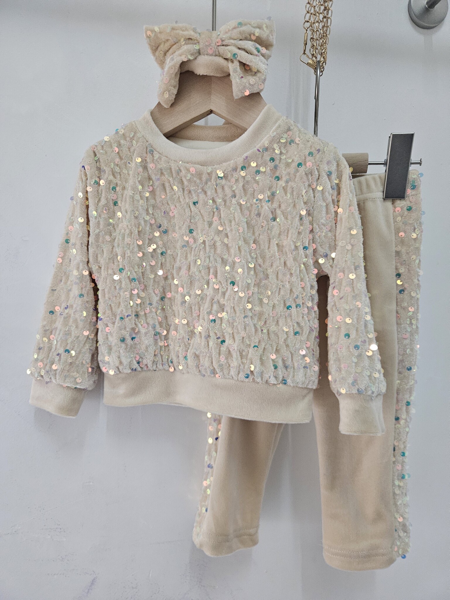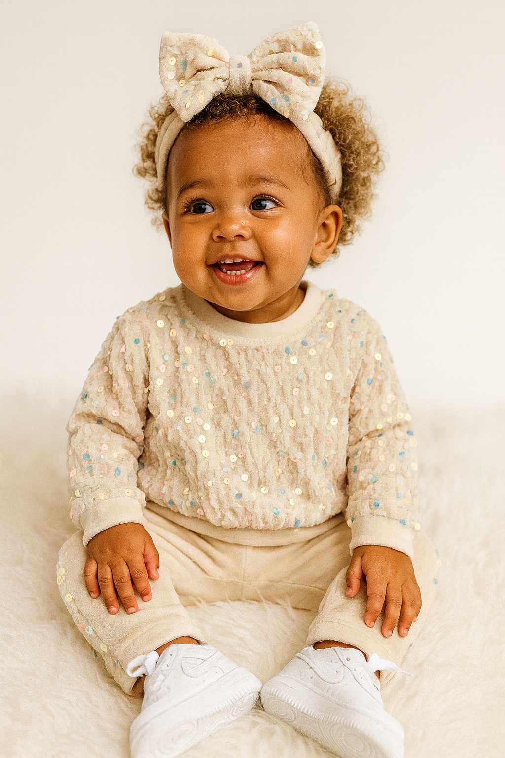 Dit prachtige setje is een musthave voor de feestdagen! Het complete kledingsetje voor de kerst bestaat uit een broekje met een bijpassende sweater & haarband!