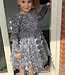 Feestelijk Grijs kerstjurkje met pailletten, tule rok met vlinders. Perfect voor de feestdagen! Verkrijgbaar van maat 86/92 t/m 146/152.