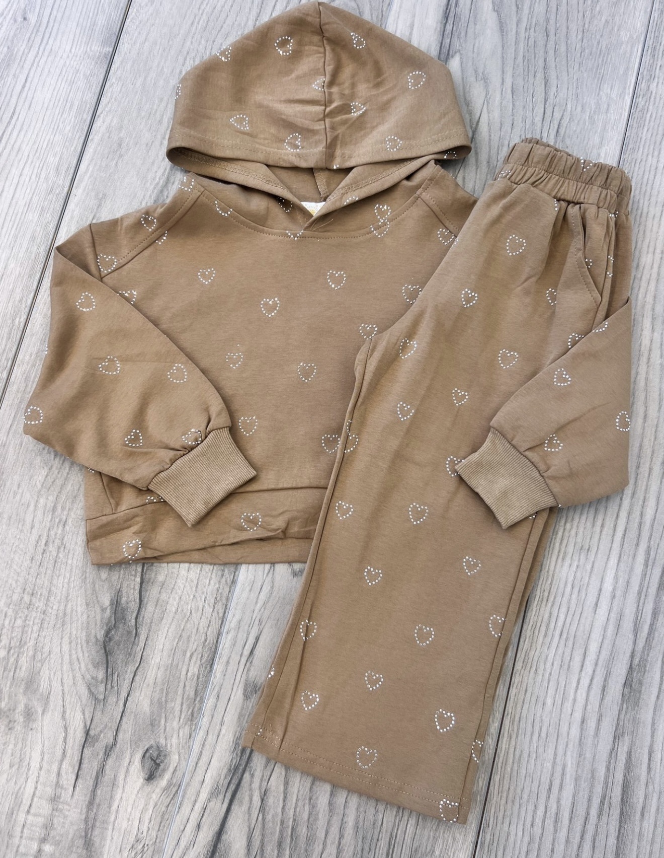 Een prachtig setje voor de meiden! Een 2-delig setje dat bestaat uit een wijde broek & een bijpassende trui met hartjes print.