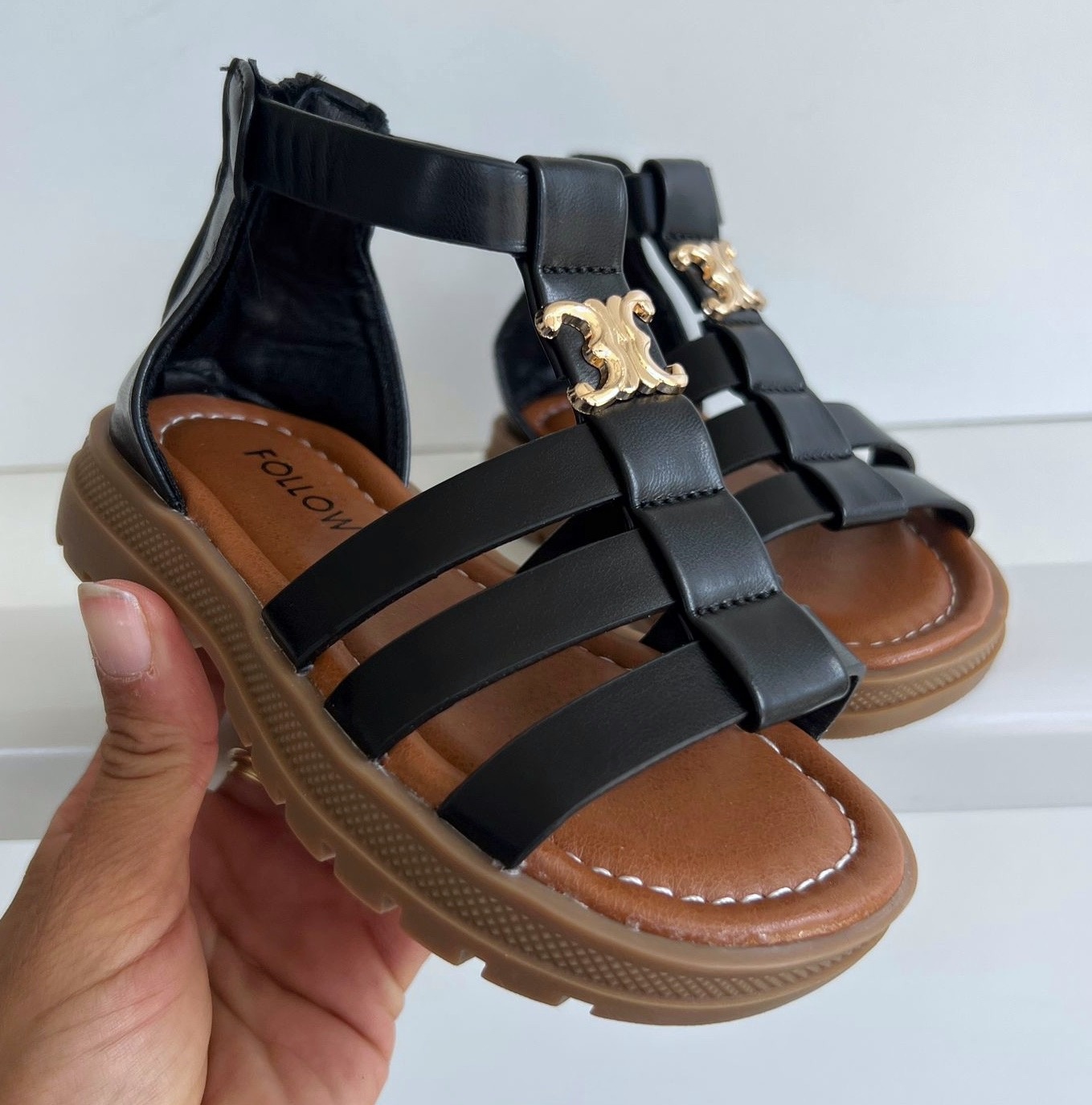 Maatadvies: De sandalen vallen op maat. Onder het kopje 'Toevoegen aan de winkelwagen' staat een kopje met maattabel. De binnenzool van de schoenen zijn opgemeten.