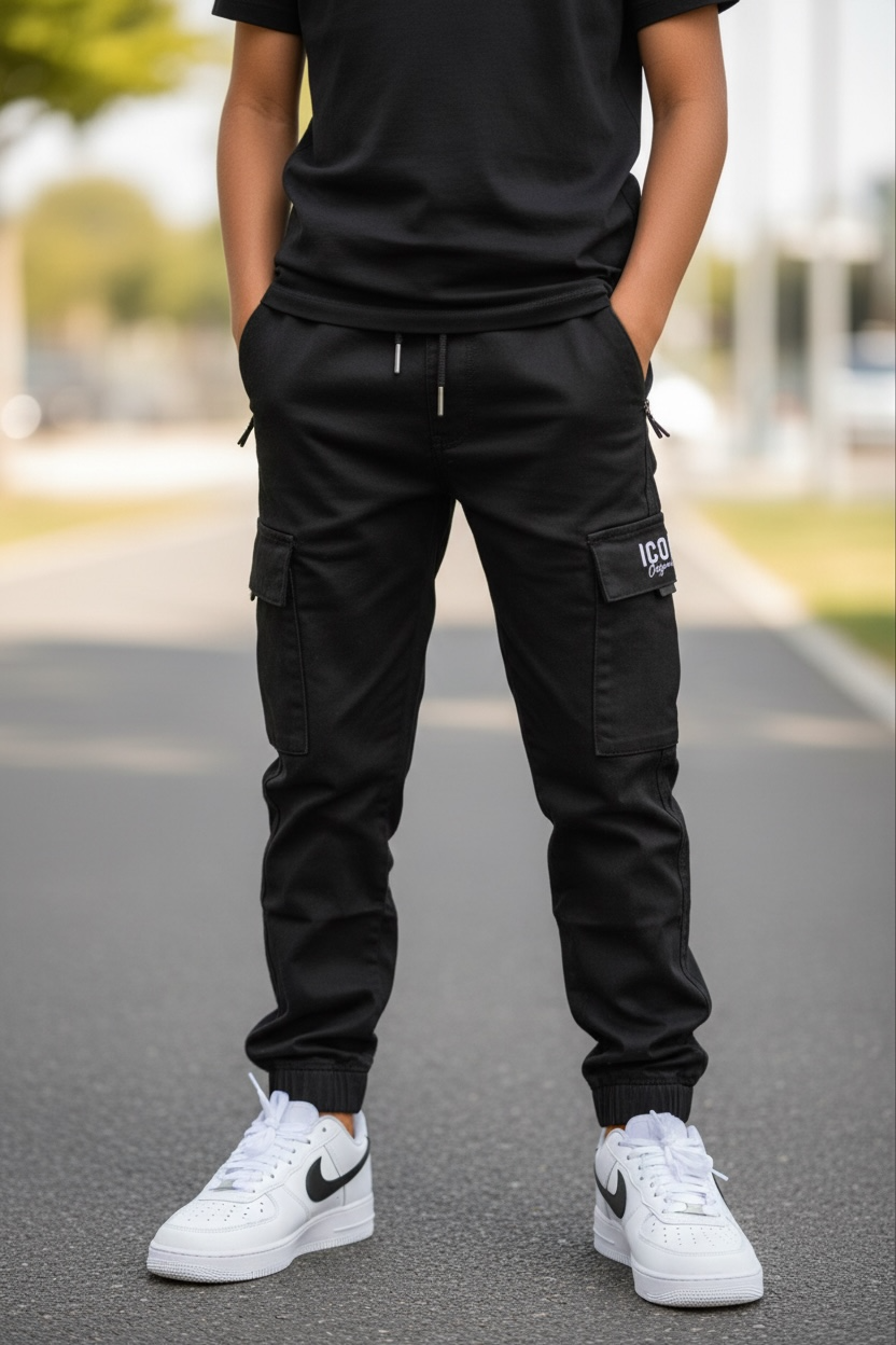 Stoere Icon cargo broek voor jongens. Verkrijgbaar in maat 98/104 t/m 158/164.