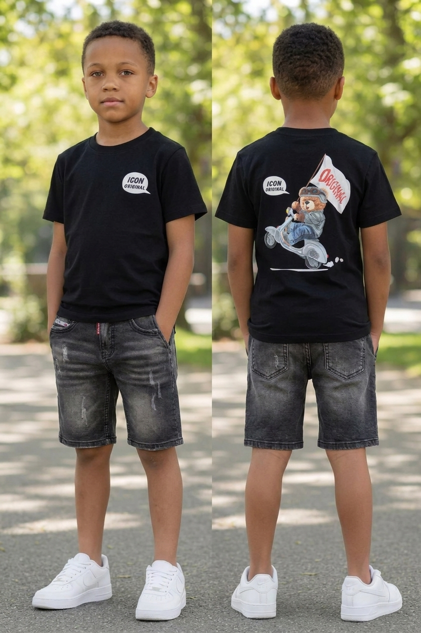 Icon Denim short Set - Zwart (Verzenddatum 23 April)