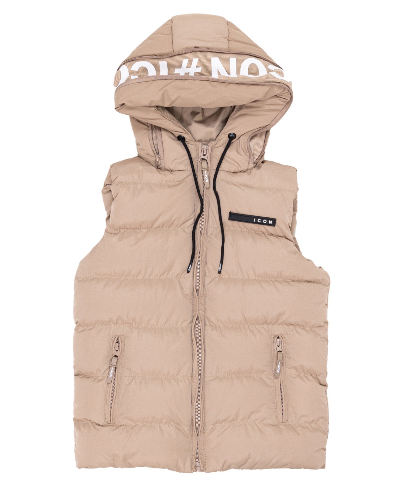 De binnenkant is afgewerkt met een zwarte voering en opvallende ICON-opdruk langs de capuchonrand, wat zorgt voor een sportieve en trendy uitstraling. De capuchon biedt extra bescherming tegen wind en kou, terwijl de stevige ritssluiting en praktische zakken zorgen voor optimaal gebruiksgemak. Op de borst prijkt subtiel het ICON-logo als finishing touch.