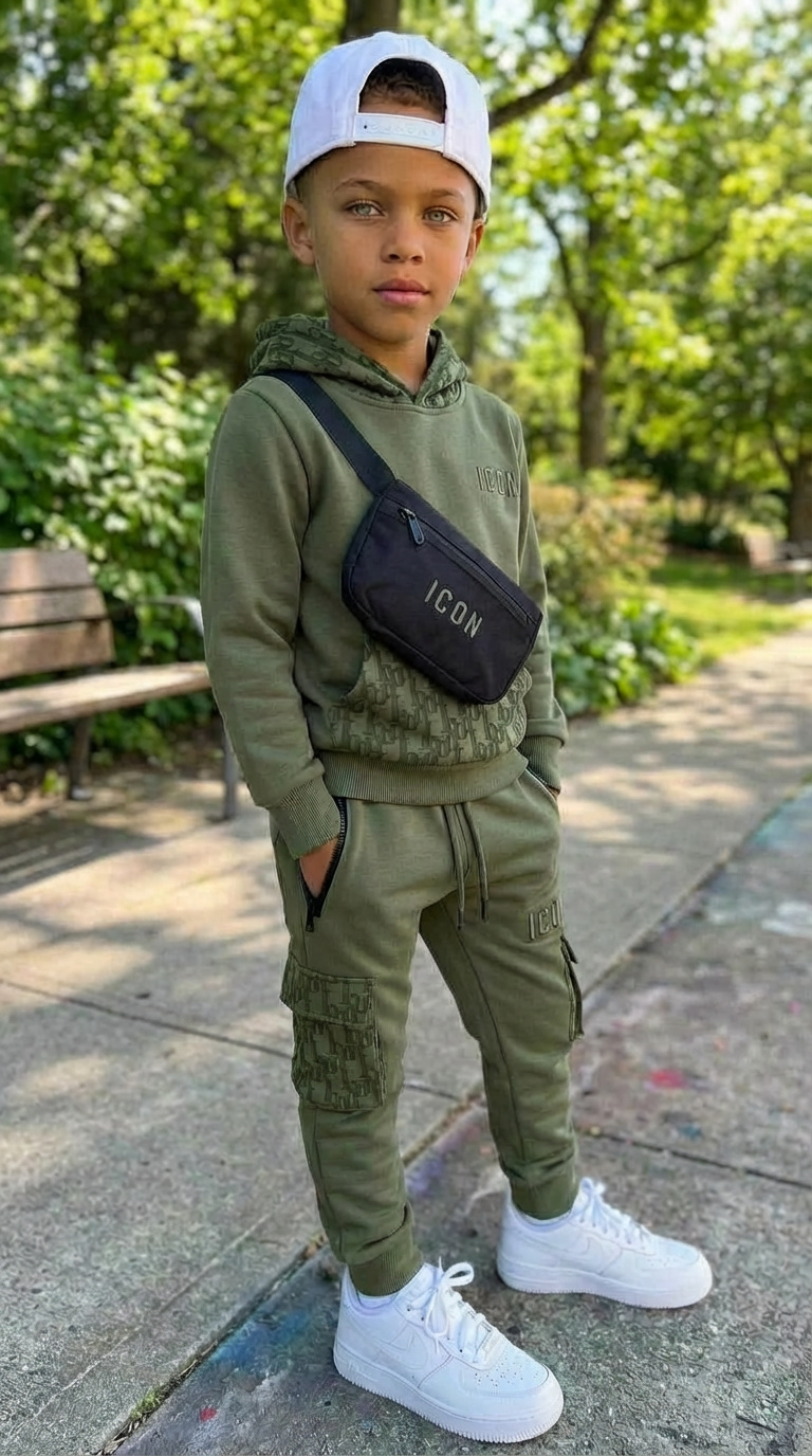 Met dit gave complete kindersetje voor jongens is jouw boef helemaal ready to go! Het joggingsetje voor jongens bestaat uit een joggingbroek, vest & tasje