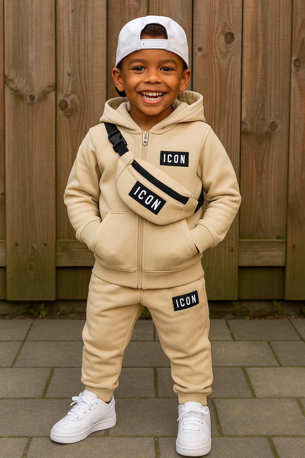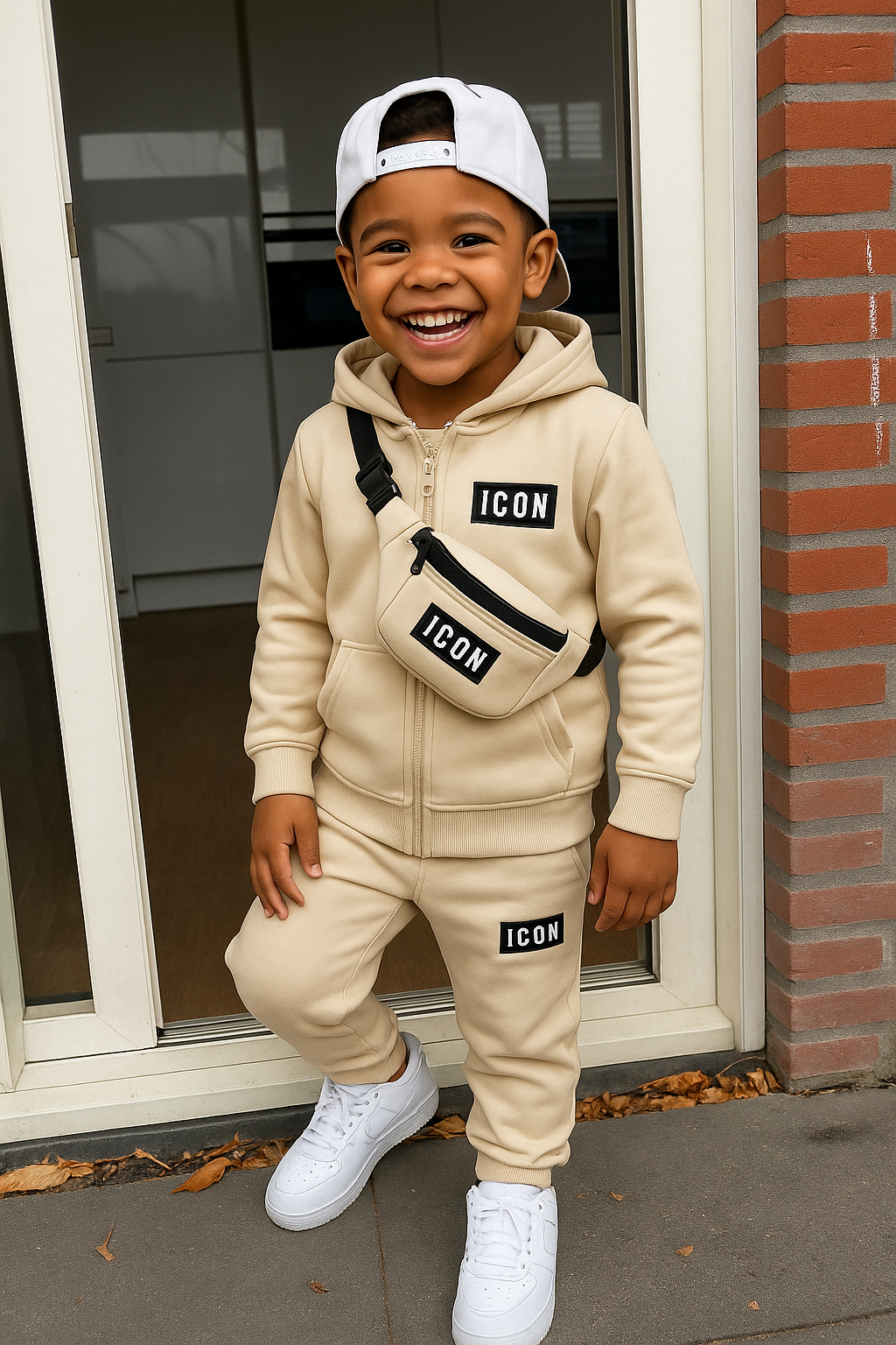 Met dit gave complete ICON trainingspak voor kinderen is jouw boef helemaal ready to go! Het joggingsetje voor jongens bestaat uit een joggingbroek en een sweater met de tekst Icon. Je krijgt het tasje er gratis bij!