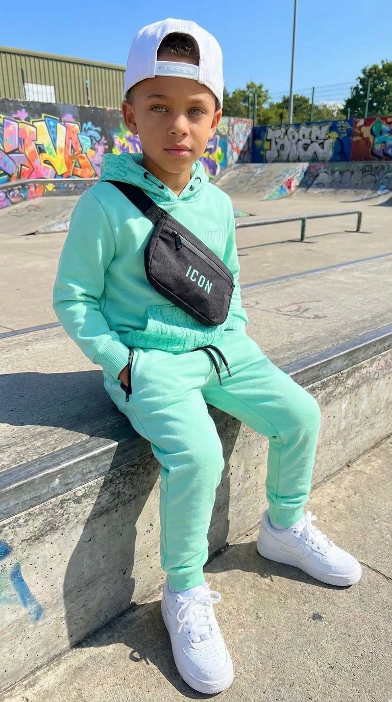 Met dit gave complete kindersetje voor jongens is jouw boef helemaal ready to go! Het joggingsetje voor jongens bestaat uit een joggingbroek, vest & tasje
