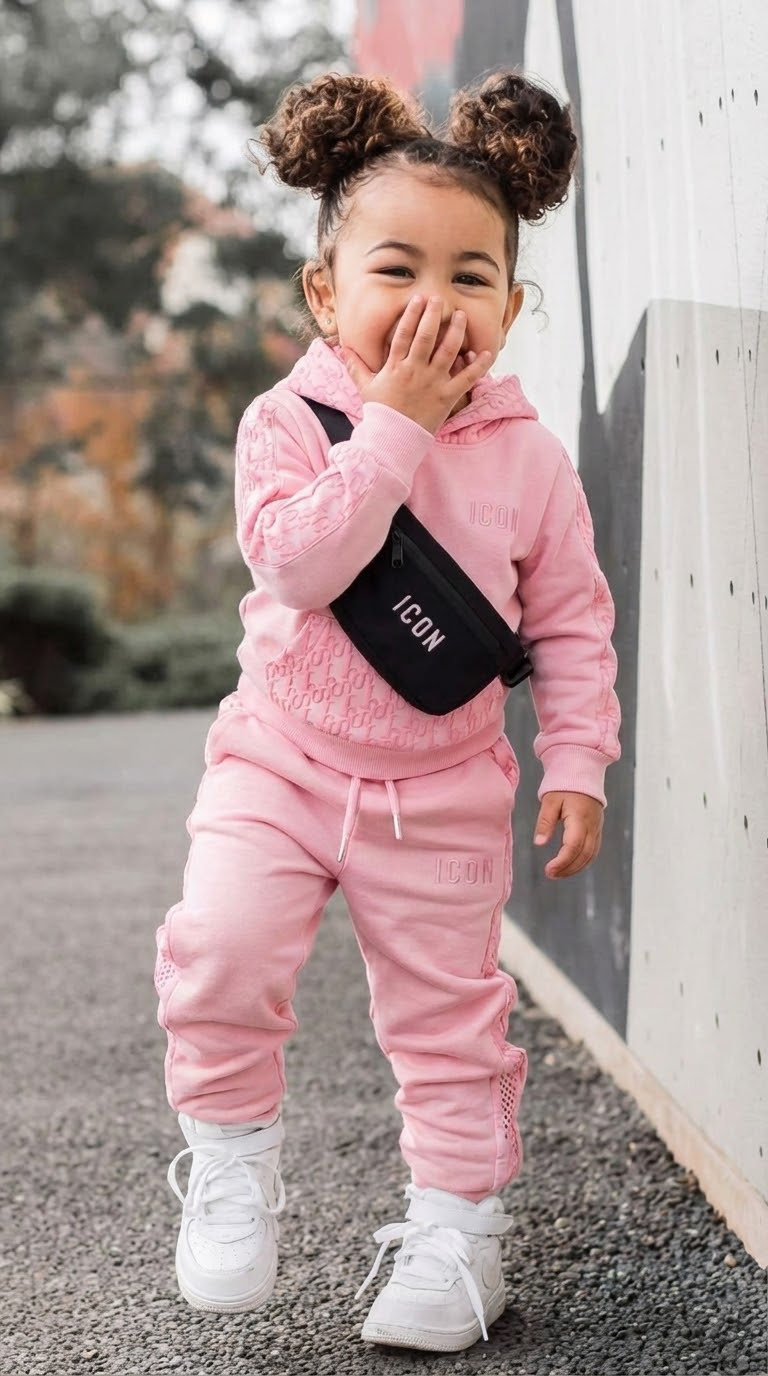 Met dit gave Icon complete kindersetje voor de meiden is jouw boef helemaal ready to go! Het joggingsetje voor meisjes bestaat uit een joggingbroek en een vest.