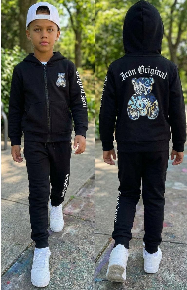 Met dit gave complete ICON trainingspak voor kinderen is jouw boef helemaal ready to go! Het joggingsetje voor jongens bestaat uit een joggingbroek en een sweater met de tekst Icon.
