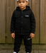 Stoer zwart ICON joggingpak voor kinderen. Set met jas-hoodie en jogger met zakken. Comfortabel en trendy, verkrijgbaar in maat 104/110 t/m 158/164.