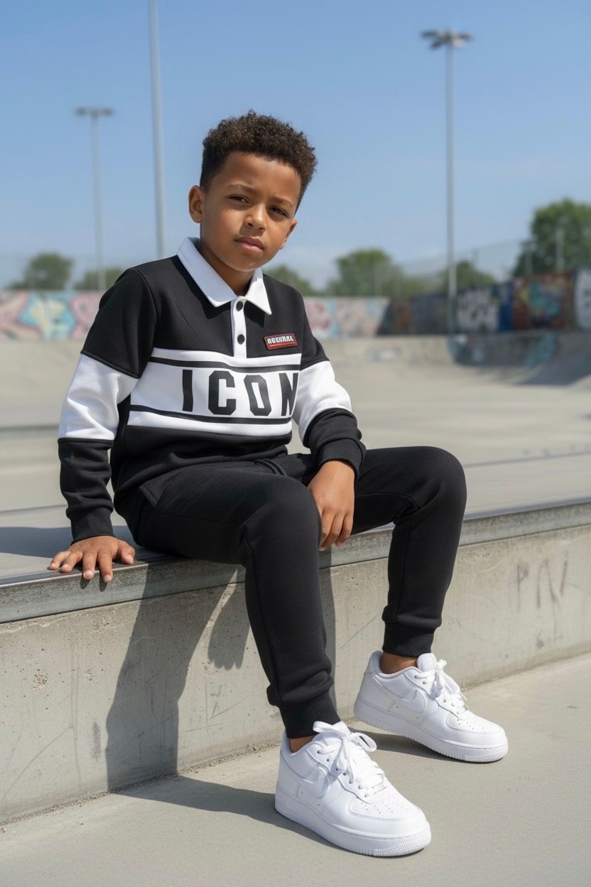 Deze stoere Beige joggingset is perfect voor jongens die houden van een sportieve en moderne look. De set bestaat uit een comfortabel vest met ritssluiting en een bijpassende joggingbroek.