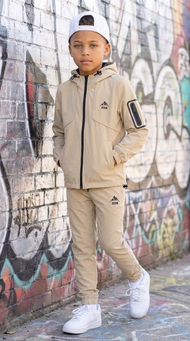 Met dit gave complete ICON trainingspak voor kinderen is jouw boef helemaal ready to go! Het pak voor jongens bestaat uit een trainingsbroek met een bijpassend vestje.