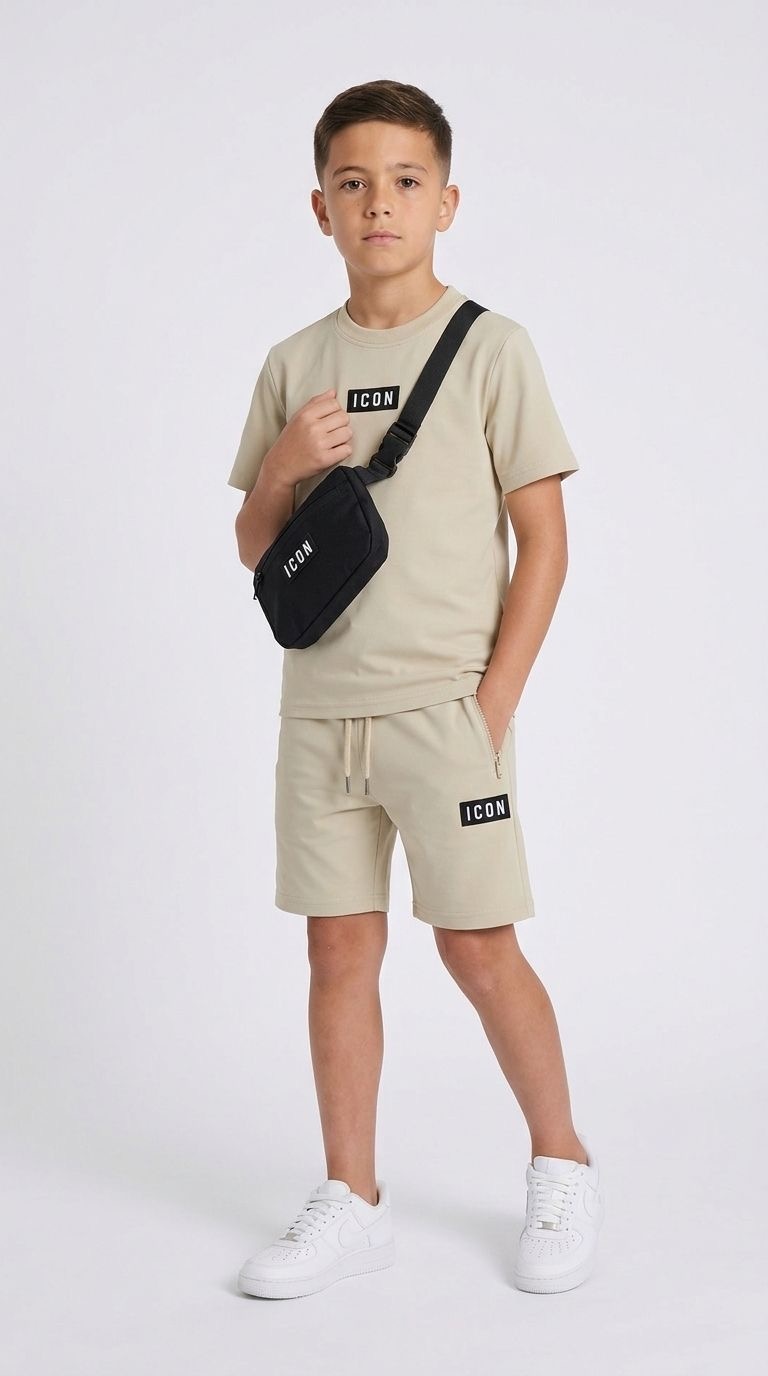 Met dit gave complete zomersetje voor jongens is jouw stoere jongen helemaal ready to go! Het 3-delige setje voor jongens bestaat uit een korte broek met een bijpassend T-Shirt & een Tasje!