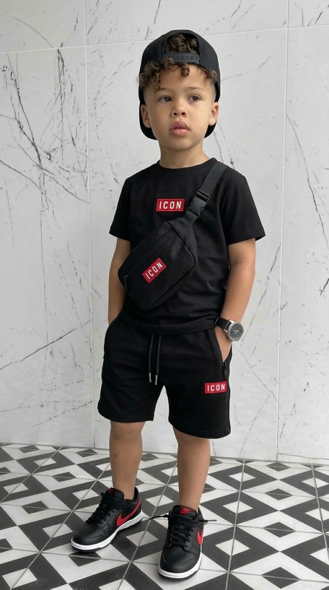 Met dit gave complete zomersetje voor jongens is jouw stoere jongen helemaal ready to go! Het 3-delige setje voor jongens bestaat uit een korte broek met een bijpassend T-Shirt & een Tasje!