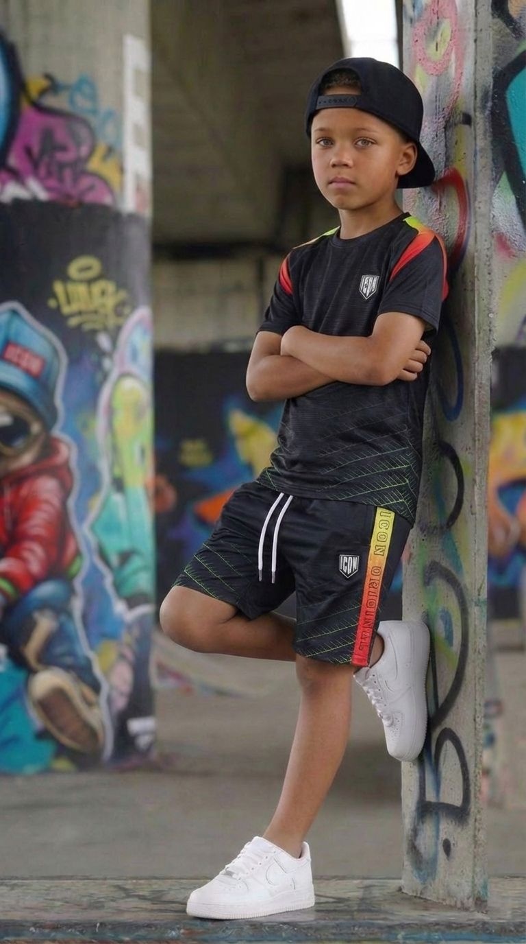 Met dit gave complete zomersetje voor jongens is jouw stoere jongen helemaal ready to go! Het 2-delige setje voor jongens bestaat uit een korte broek met een bijpassend T-Shirt!