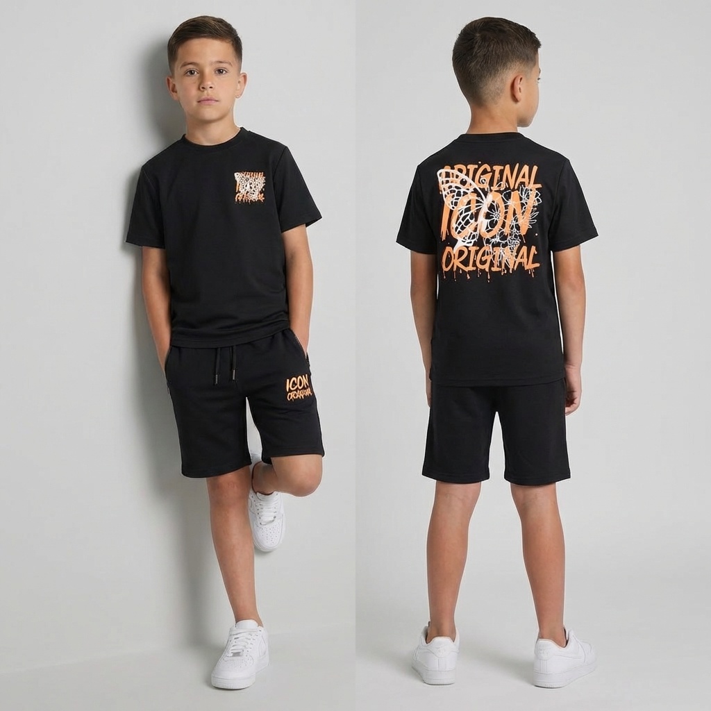 Met dit gave complete zomersetje voor jongens is jouw stoere jongen helemaal ready to go! Het 2-delige setje voor jongens bestaat uit een korte broek met een bijpassend T-Shirt!