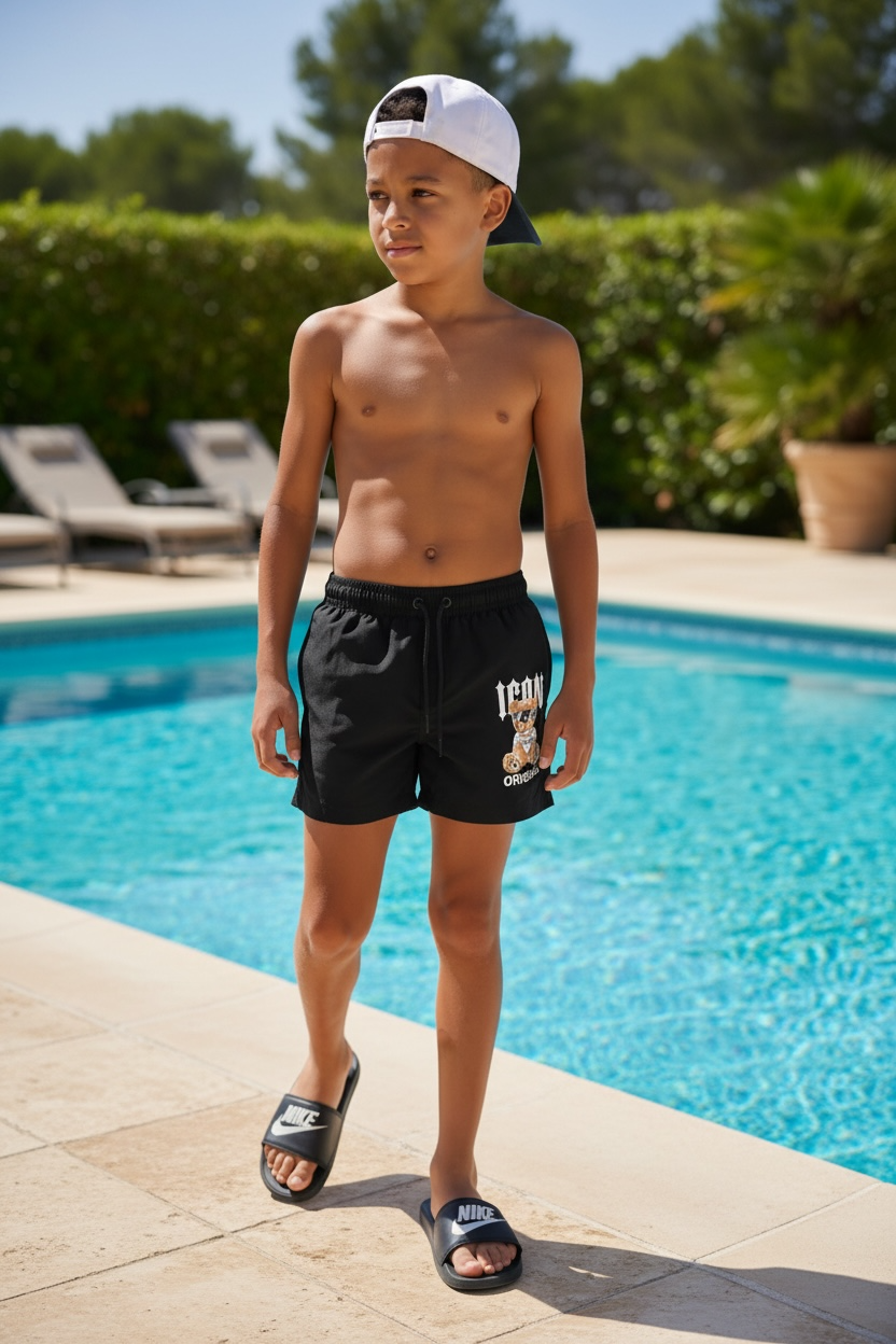 Stoere Icon zwembroek voor jongens met. Comfortabel, trendy en perfect voor warme dagen. Ideaal voor vakantie en buitenspelen. Verkrijgbaar in maat 98/104 t/m 158/164.