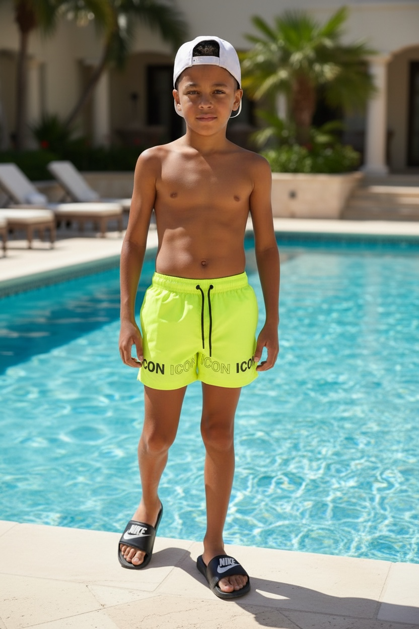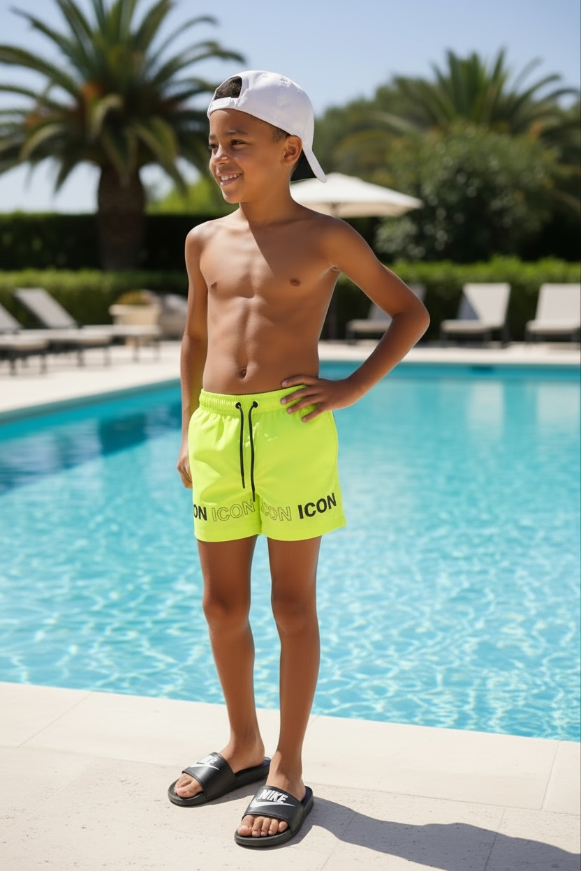 Stoere Icon zwembroek voor jongens met. Comfortabel, trendy en perfect voor warme dagen. Ideaal voor vakantie en buitenspelen. Verkrijgbaar in maat 98/104 t/m 158/164.