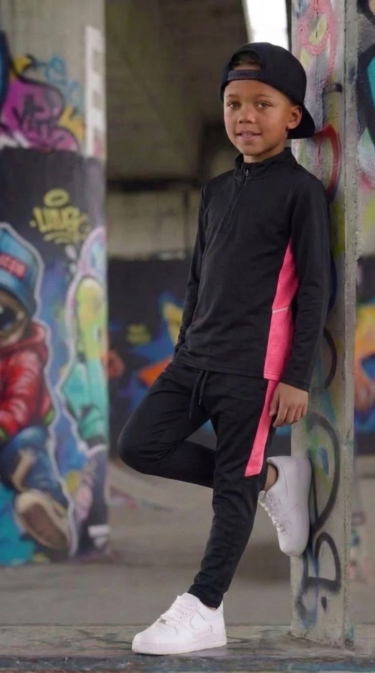Deze stoere joggingset is perfect voor jongens die houden van een sportieve en moderne look. De set bestaat uit een comfortabel vest met ritssluiting en een bijpassende joggingbroek.
