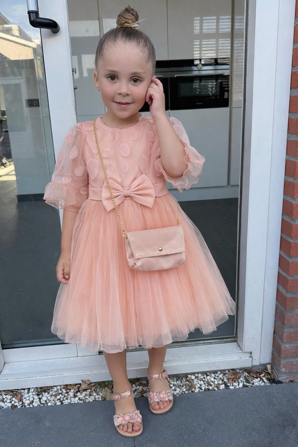 Jurk met grote strik - Zalm