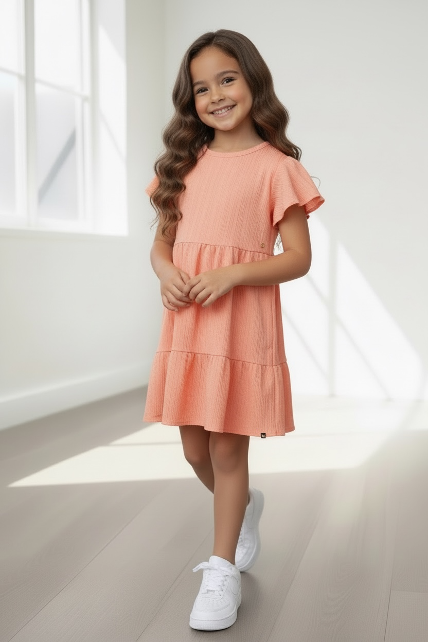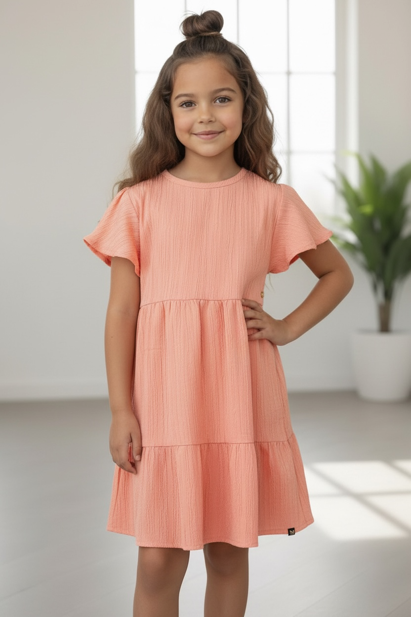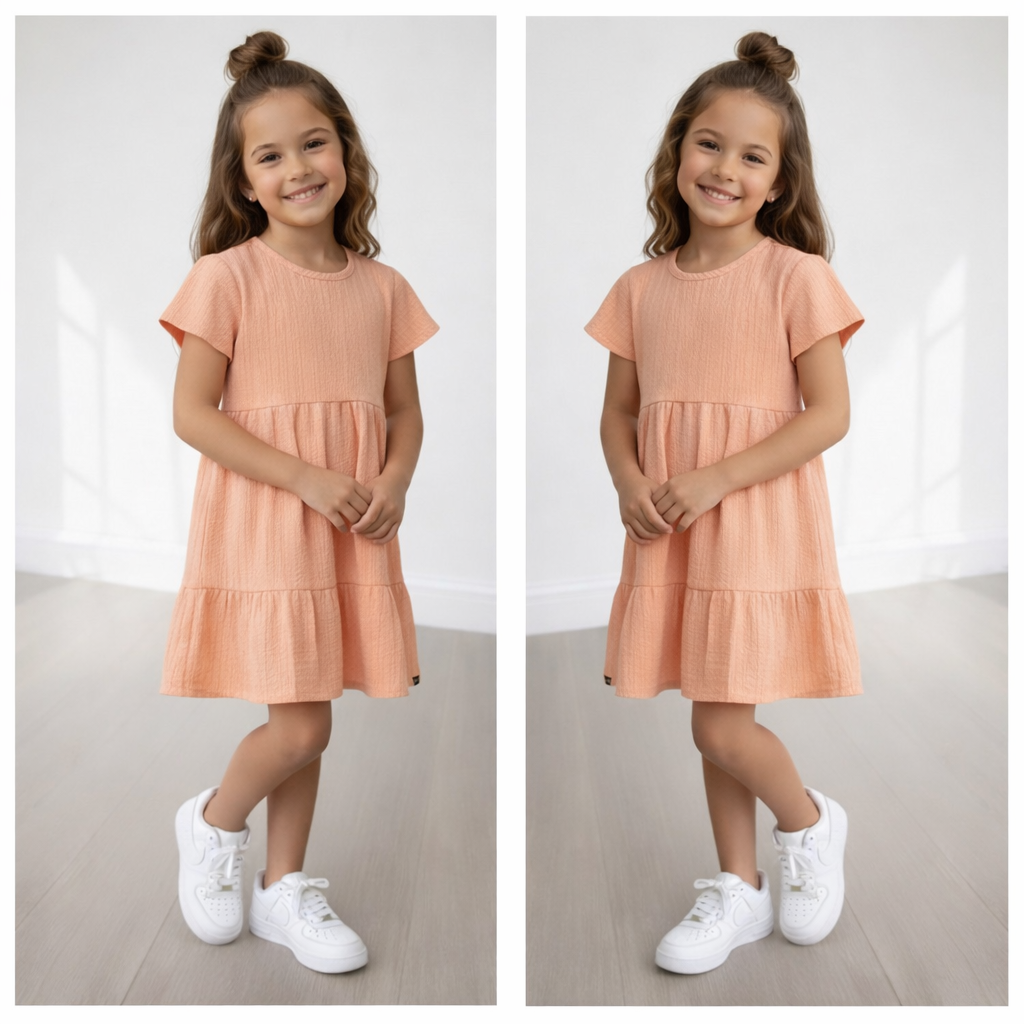 De zachte crèmekleur, speelse ruches en comfortabele pasvorm maken dit jurkje een echte favoriet. Perfect voor feestelijke gelegenheden, maar ook heerlijk om gewoon elke dag te dragen.