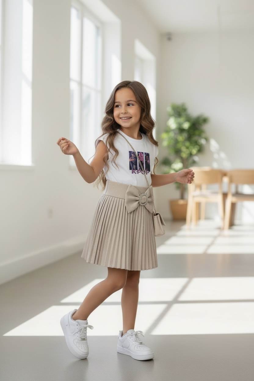 K-Pop jurkje - Sparks & Bow - Beige (Met tasje)