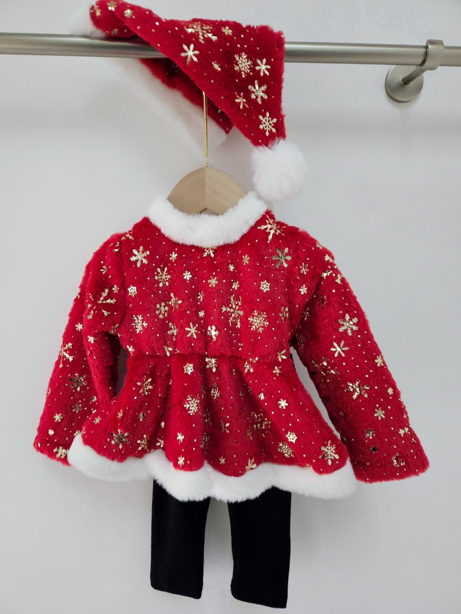 Dit lieve 3-delige setje is zo heerlijk zacht! En het bijpassende kerstmutsje maakt de outfit helemaal af!