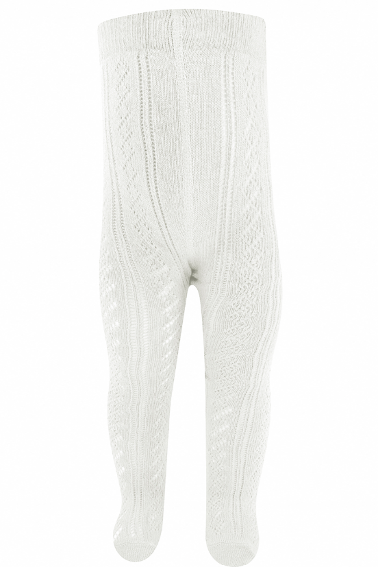 Zachte Ewers kindermaillot in latte met ajour (open structuur). Verkrijgbaar van maat 68 t/m 134/146. Comfortabel, ademend en perfect te combineren met rokjes & jurkjes.